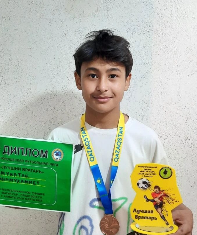 7 "Ә" сынып оқушысы Мұқатай Дінмұхамед мектебіміздің наурыз айының 20-24 аралығында өткен Республикалық "BATUR CUP" ұйымдастырған жасөспірімдер мен балалар арасында футболдан турнирге қатысып, "Лучший Вратарь" номинациасын и