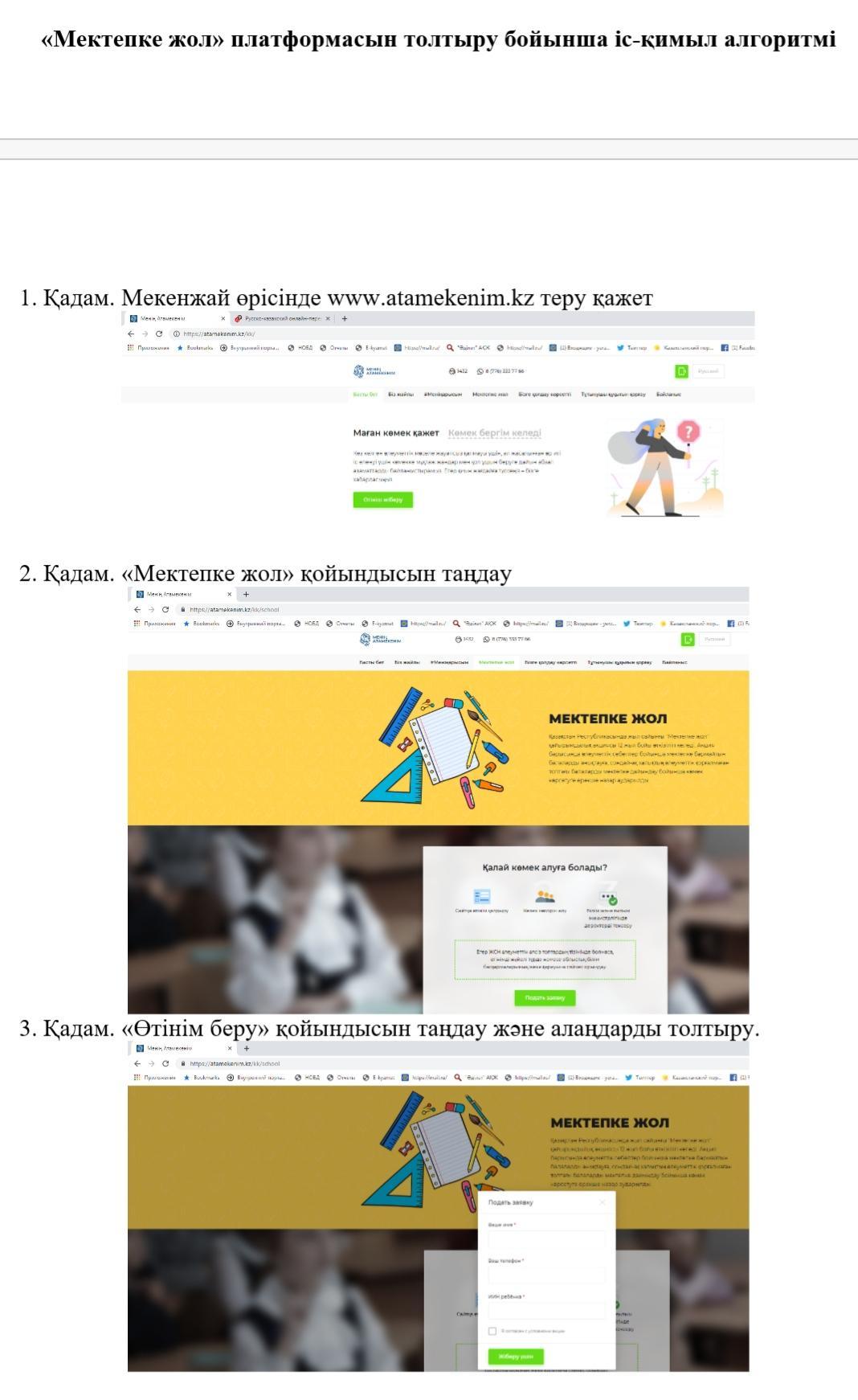При поддержке ОО "Ата мекенім" портале https:/?atamaekenim.kz/ru/school создана платформа "Дорого в школу",