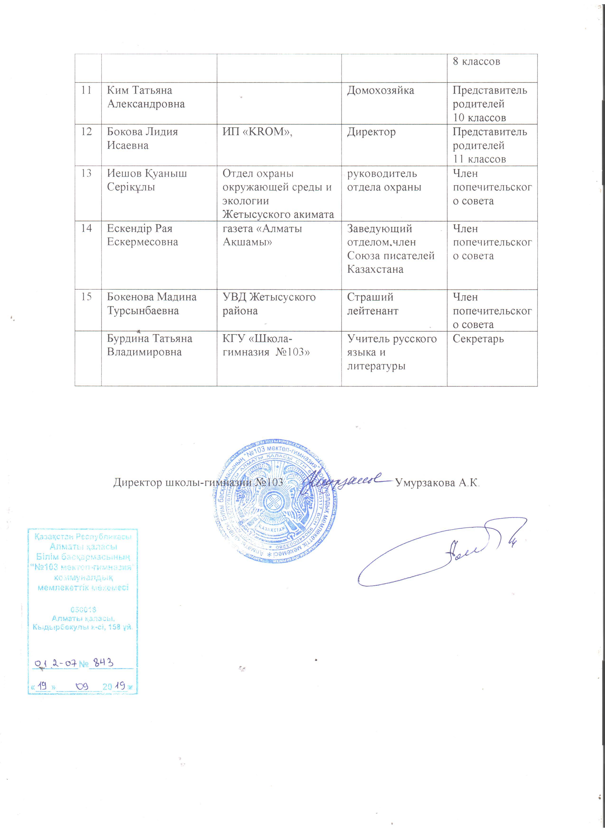 Список состава Попечительского совета » КГУ "Школа-гимназия №103" Управления образования г.Алматы