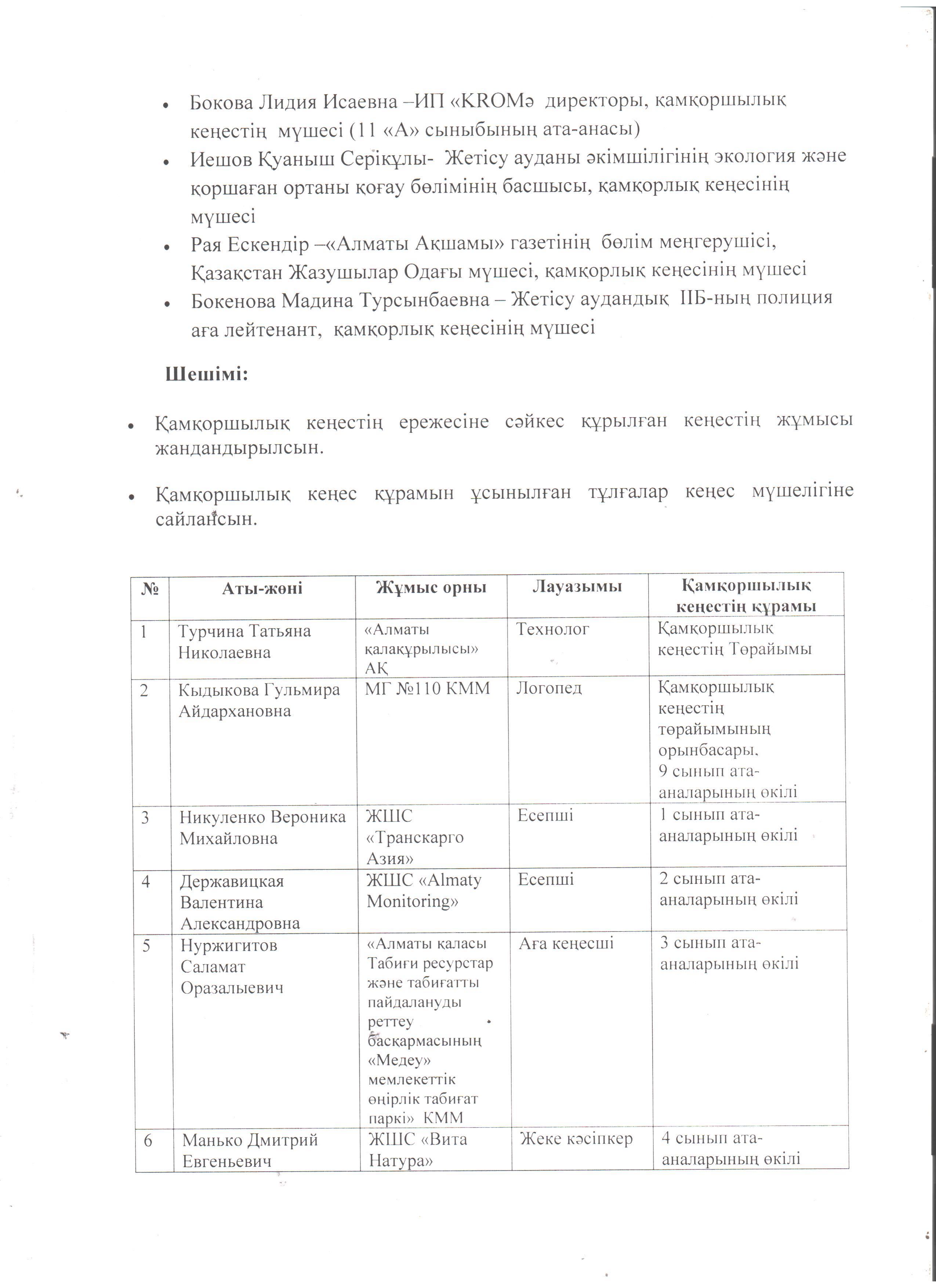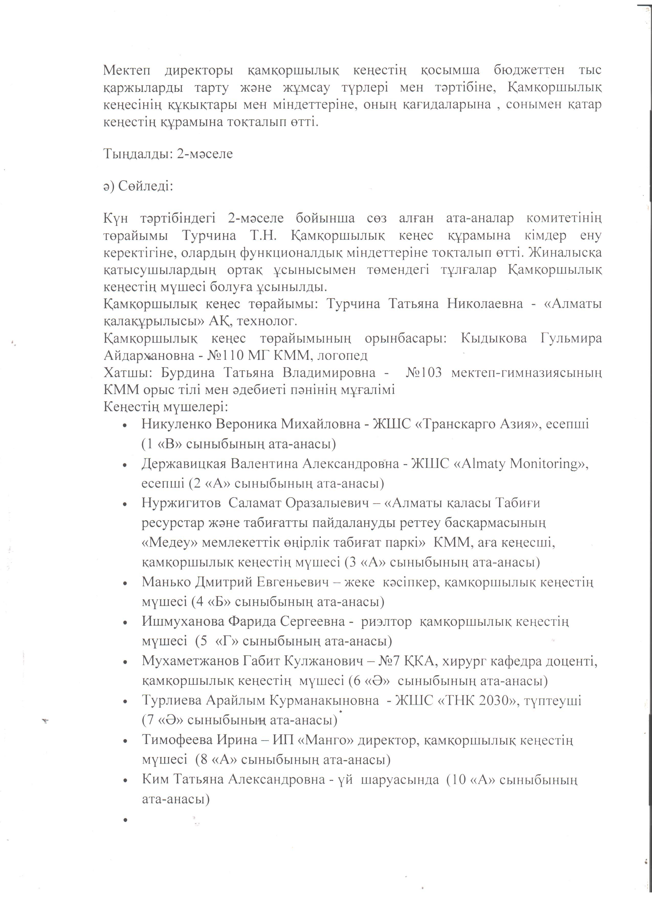 "Қамқоршылық кеңес" отырысының хаттамасы » КГУ "Школа-гимназия №103" Управления образования г.Алматы