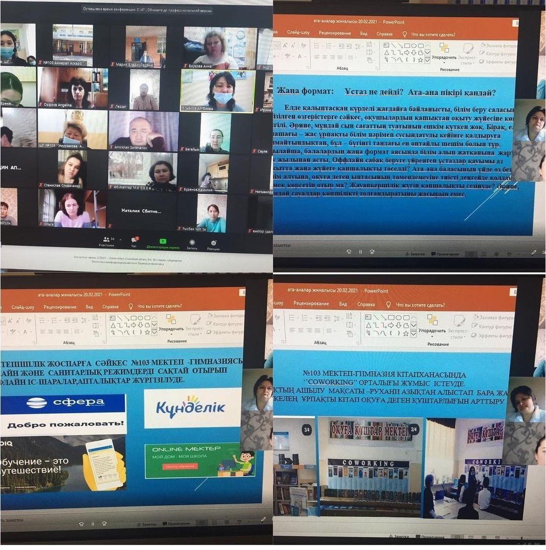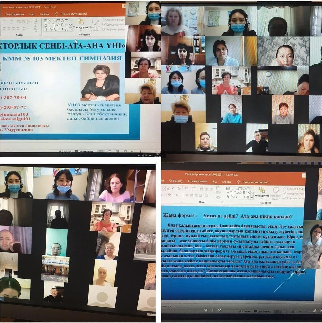 «ДИРЕКТОРЛЫҚ СЕНБІ – АТА-АНА ҮНІ» ОНЛАЙН-КЕЗДЕСУ. » КГУ "Школа-гимназия №103" Управления образования г.Алматы