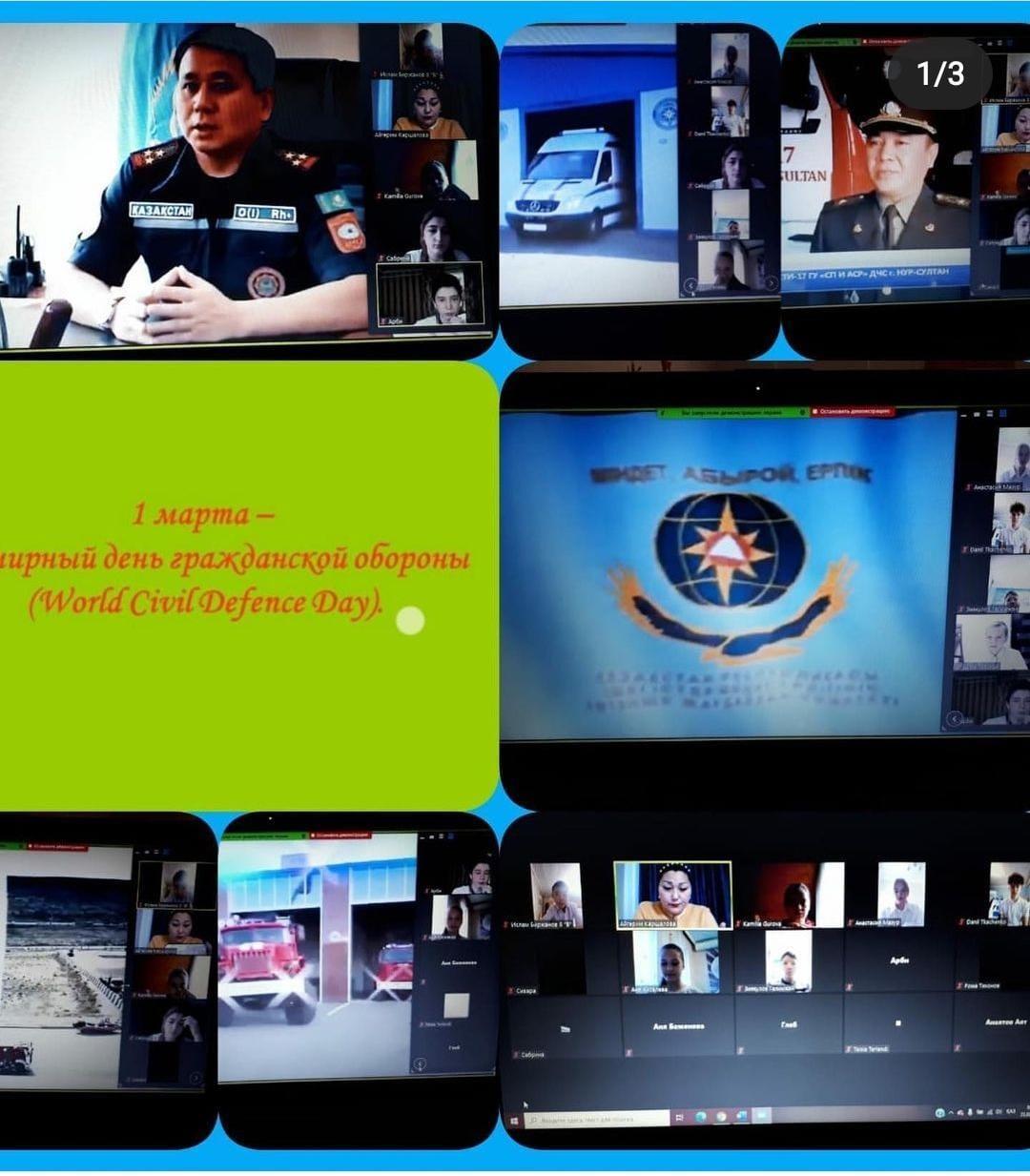 "Бүкіләлемдік азаматтық қорғаныс күні" қарсаңыңда 8-11 сыныптар арасында “1-наурыз Дүниежүзілік Азаматтық қорғаныс күні!”тақырыбында онлайн ашық сабақтар өткізілді.