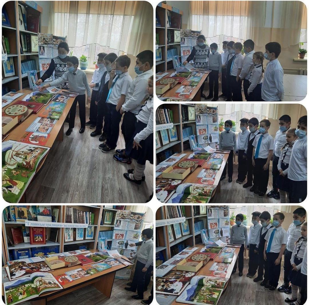 КГУ "Школа-гимназия №103" Управления образования г.Алматы » Ақпарат » Жетісу ауданы №103 мектеп-гимназиясының 5 сынып оқушыларымен «Оқуға құштар мектеп» жобасына байланысты «Наурыз мерекесін ғасырлар бойындағы тойлау дәстүрі!” тақырыбында оқушыларды қазақтың салт-дәстүрі жазылған оқулықтармен таныстыру жүргізілді.