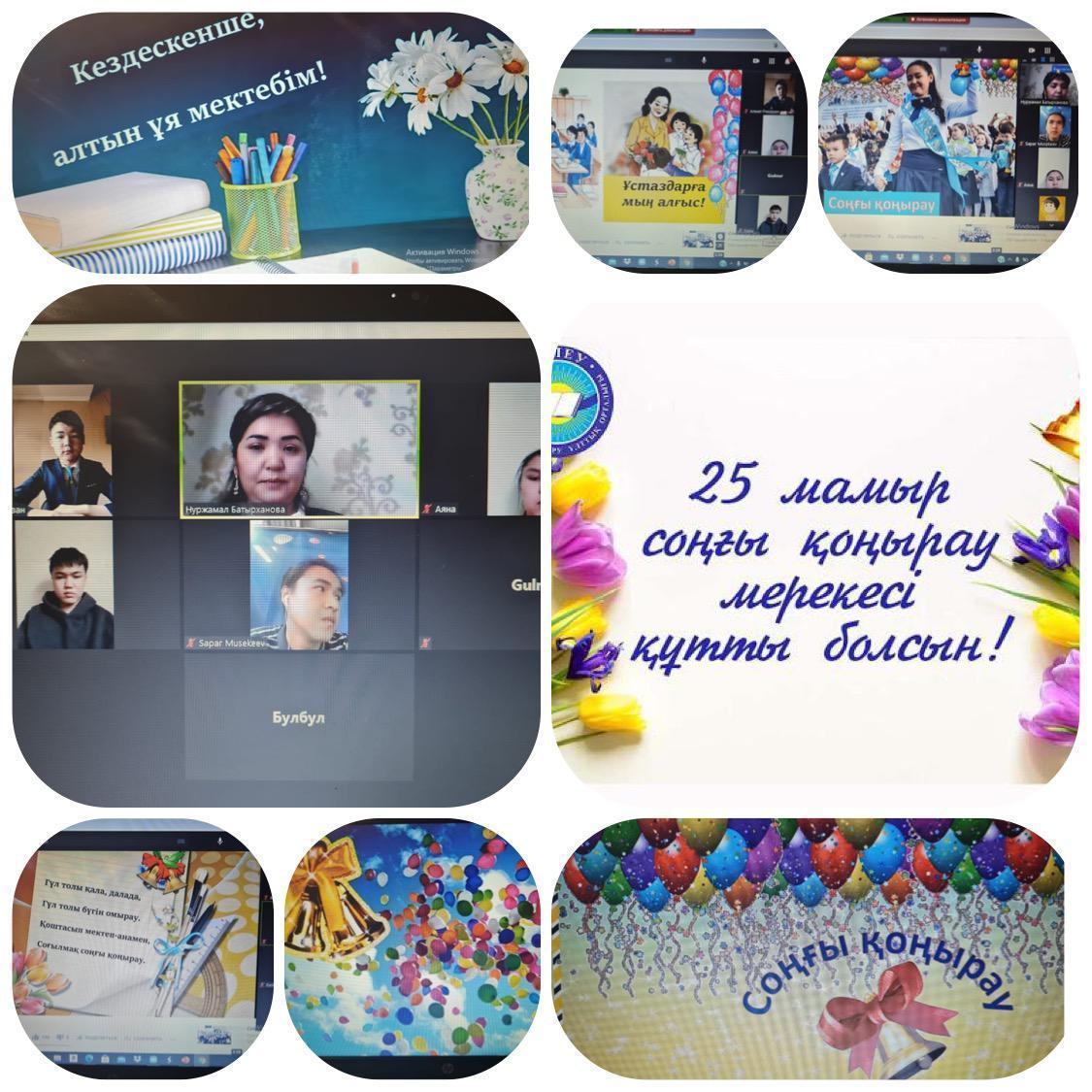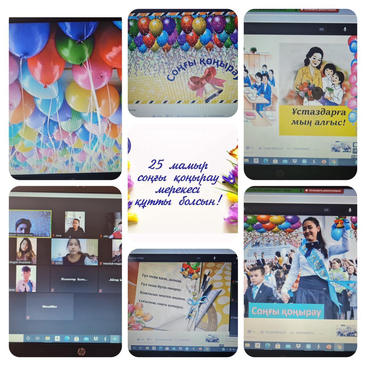 КГУ "Школа-гимназия №103" Управления образования г.Алматы » Ақпарат » Пандемия кезінде қашықтан оқу форматына байланысты Алматы қаласы Жетісу ауданы №103 мектеп-гимназиясында 2020-2021 оқу жылының 25-мамыр "Сыңғырла ,соңғы қоңырау" атты соңғы қоңырау салтанаты 1-11 сыныптар үшін онлайн форматта ұйымдастырылды.