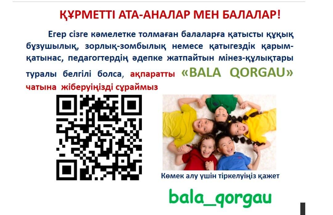 Министерство образования и науки Республики Казахстан совместно с ОО «Атамекенім» запускает проект « Bala Qorgau» по оказанию бесплатной консультационной помощи школьникам и их родителям –веб-сайт « bala qorgau».Более подробно ознакомиться с проектом можно на веб-сайте https://bala.gov.kz).