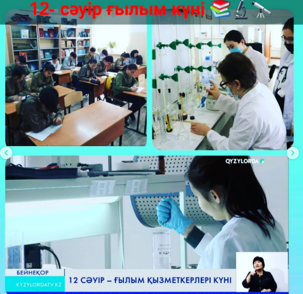 Классный час «День науки», 9 В класс, кл. рук. Каршалова А. Д. Классный час проводился в форме презентации с использованием ИКТ и лекционного материала. Использовались различные информационные источники, рассказ о Казахстанской науке.