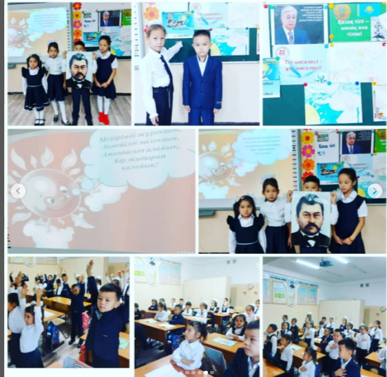 Жетісу ауданы #103 мектеп-гимназияның тәрбие жоспары негізінде Қазақстан халықтарының тілдер күні мерекесіне орай мектеп оқушыларымен “Мемлекеттік тіл-менің тілім” тақырыбында сынып сағаттары өткізілді.