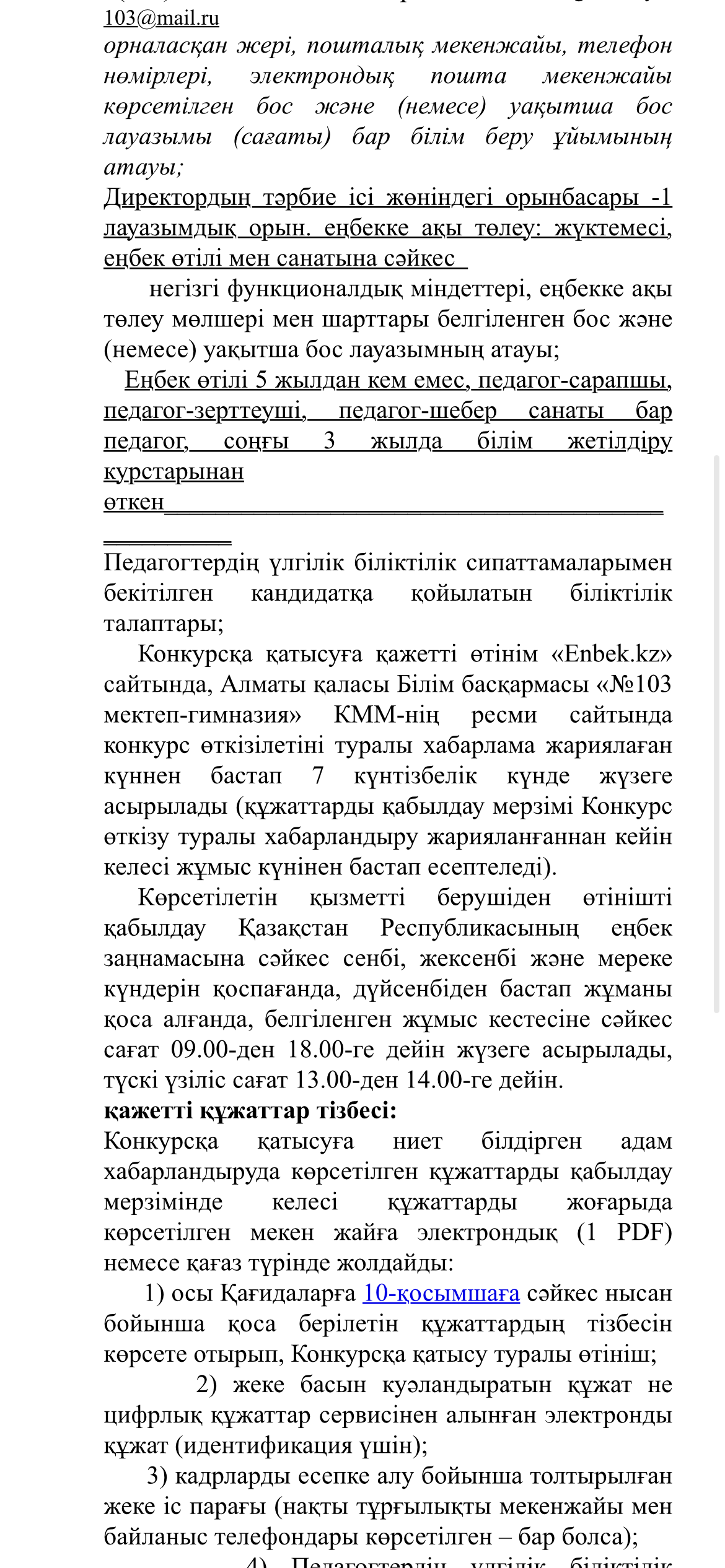 Хабарландыру » КГУ "Школа-гимназия №103" Управления образования г.Алматы