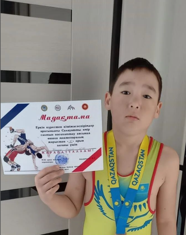 Салауатты өмір салтын насихаттау аясында өткен мектепаралық жарыстан ІІІ орын алған Жандар Мереке (35 кг) марапатталады.