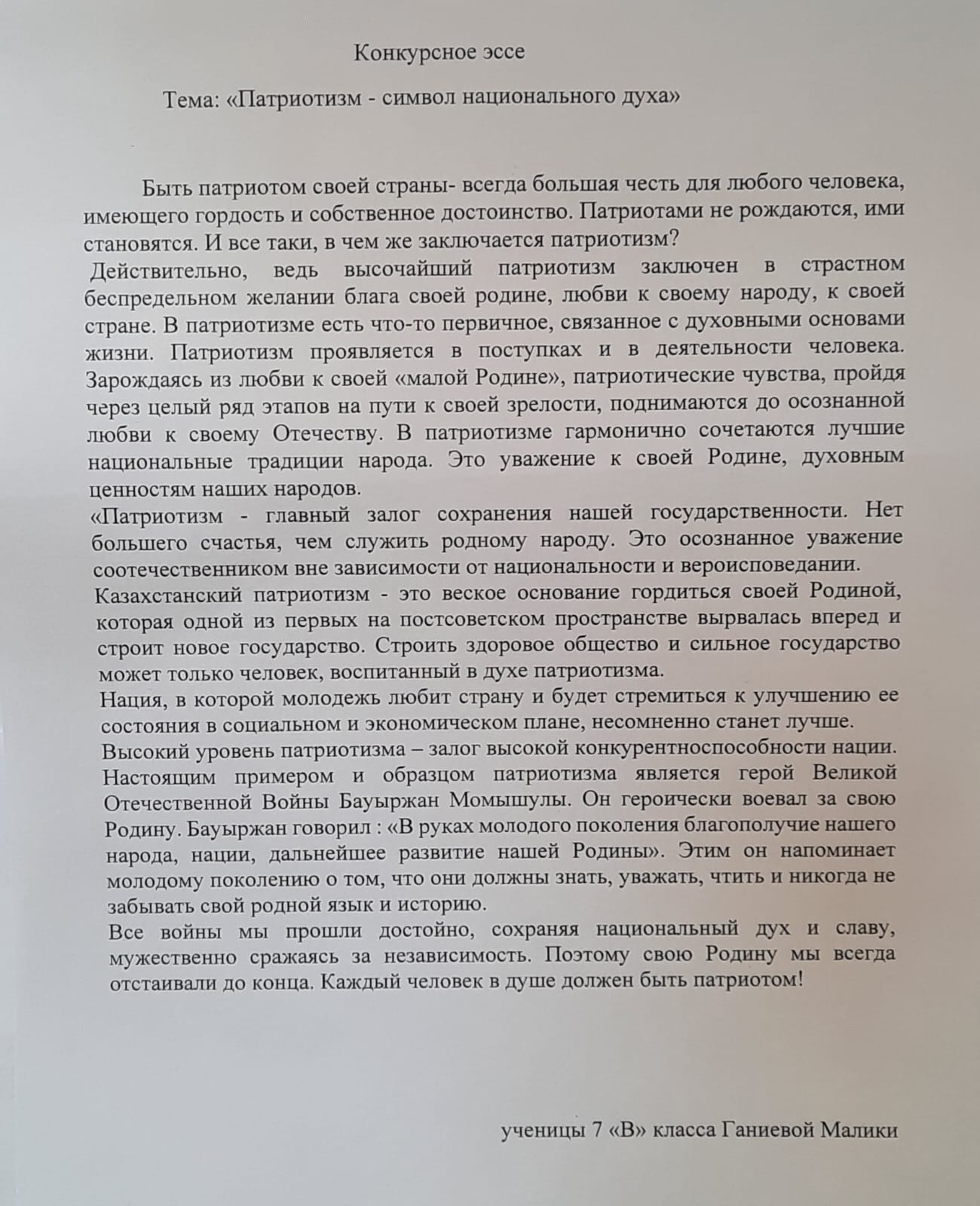 Эссе Ганиева Малика 7 В сынып оқушысы