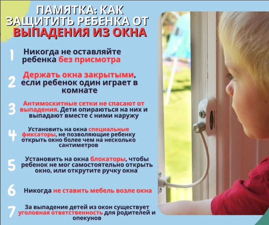 ПАМЯТКА для родителей: Как защитить детей от выпадения из окна