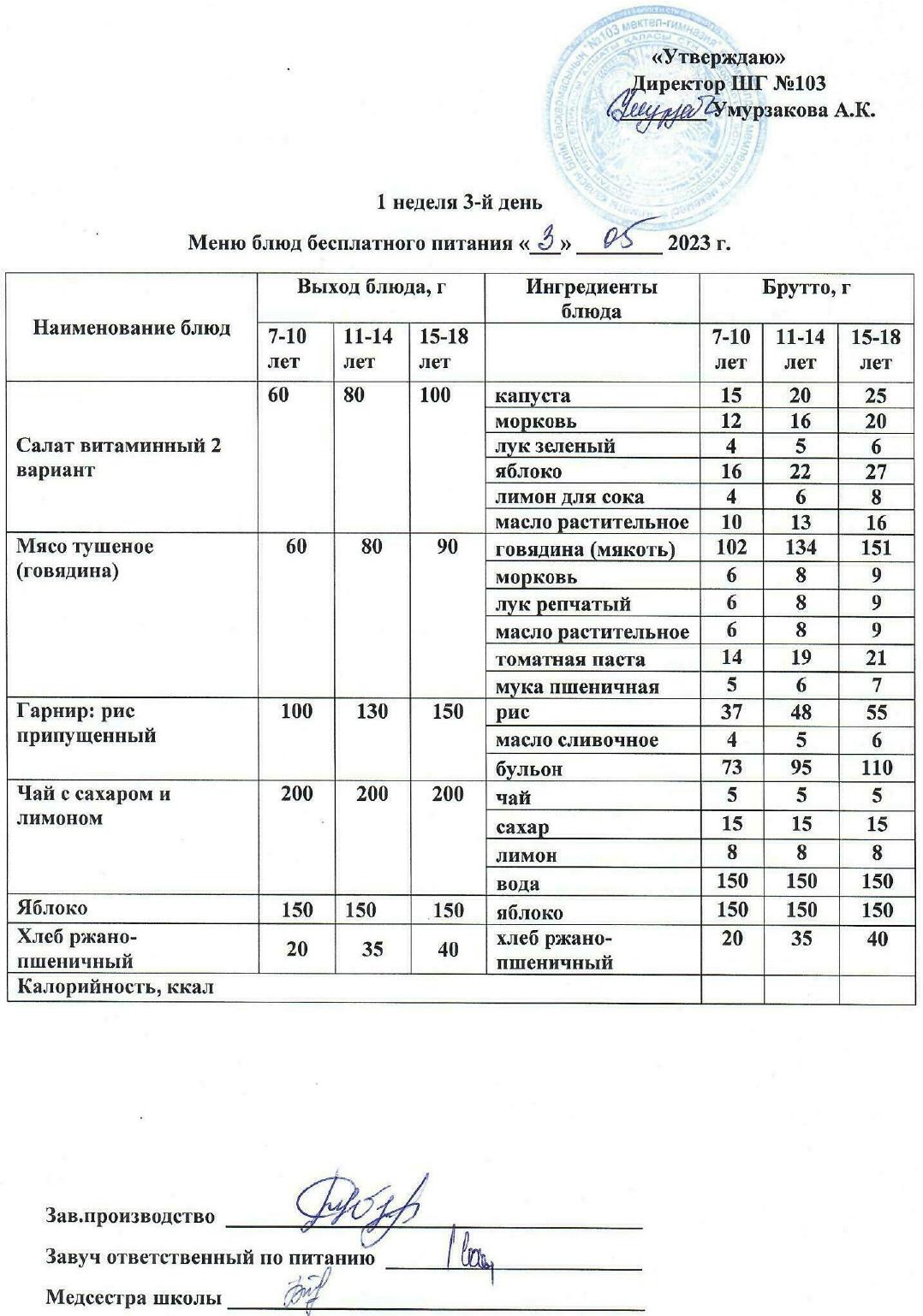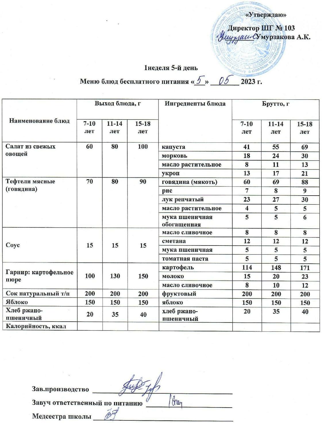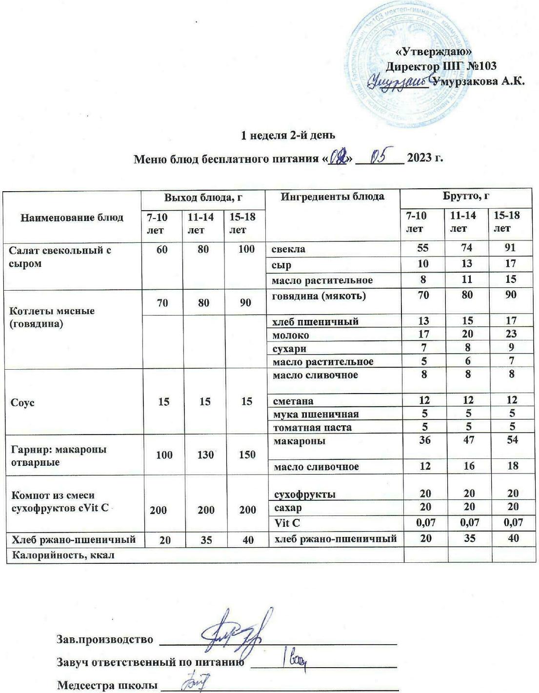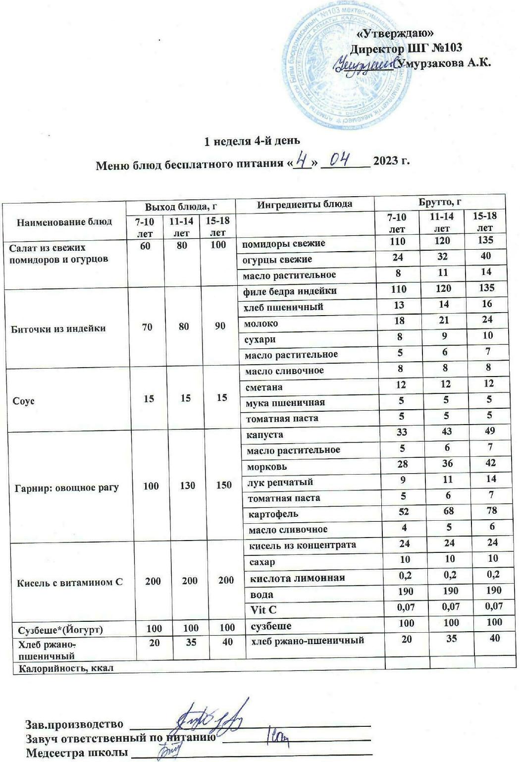 1 апталық ас мәзірі » КГУ "Школа-гимназия №103" Управления образования г.Алматы