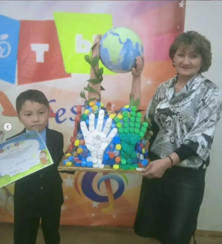 КГУ "Школа-гимназия №103" Управления образования г.Алматы » Ақпарат » Алматы қаласы Жетісу аудандық «БАЛАFEST" фестивалінде №103 мектеп-гимназиясының 3 “Б” сынып оқушысы Кемелбай Азамат “Жасыл қала “ (Қайырымды қақпақтар) байқауында II орынды жеңіп алды. Жетекшісі: Усманова Гульбахрам Садыковна
