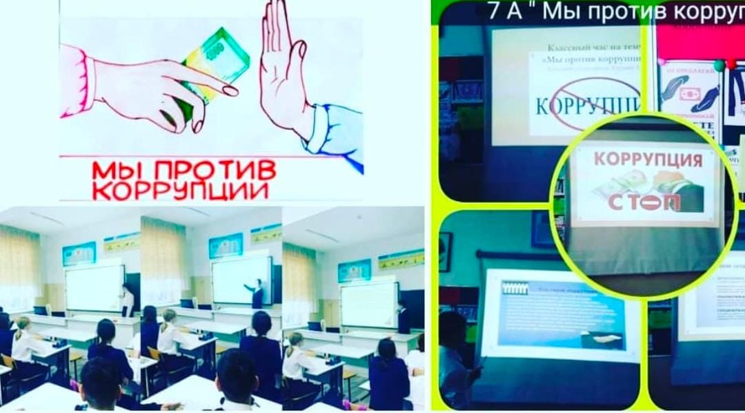 Оқушылармен мектеп әкімшілігі, сынып жетекшілер «Жемқорлықсыз болашақ» тақырыбында жиналыс өткізіп, жемқорлыққа арналған заңның орындалуын қадағалау туралы айтып өтті.