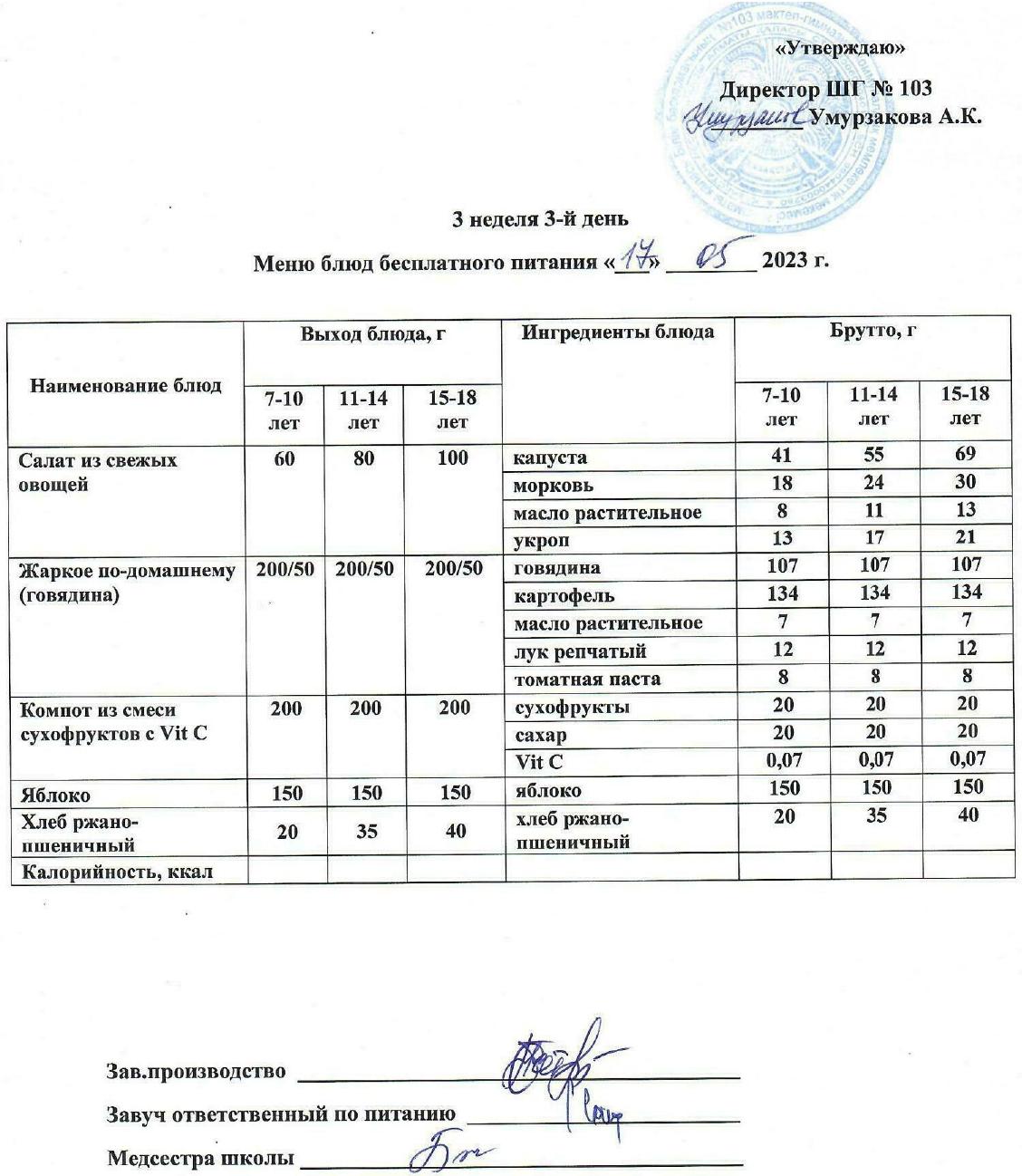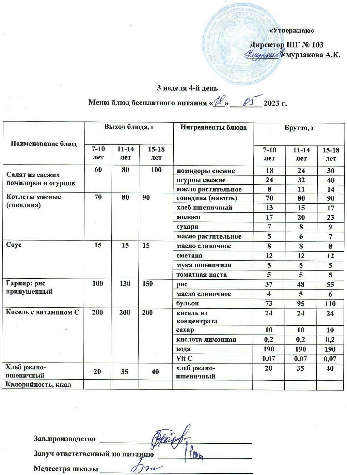 1 апталық ас мәзірі » КГУ "Школа-гимназия №103" Управления образования г.Алматы