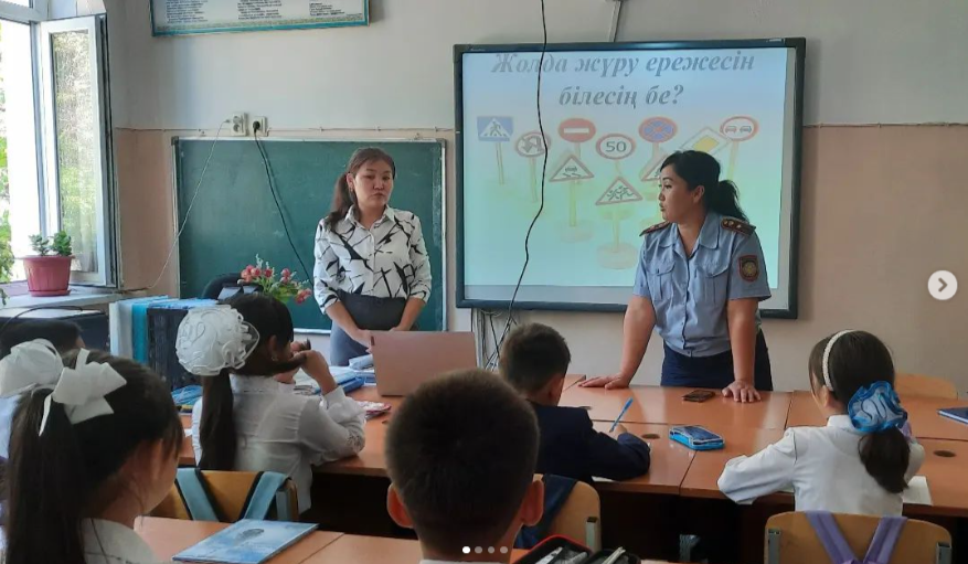 #103 мектеп - гимназиясында жаңа оқу жылының басталуына орай 5-8 сынып оқушыларына мектеп инспекторы Асылова Айнур Аманжолқызы жолда жүру ережесіне байланысты түсіндірме жұмыстарын жүргізді.