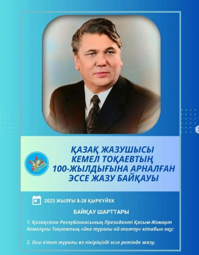 Қазақ жазушысы Кемел Тоқаевтың 100 жылдығына арналған эссе жазу байқауы