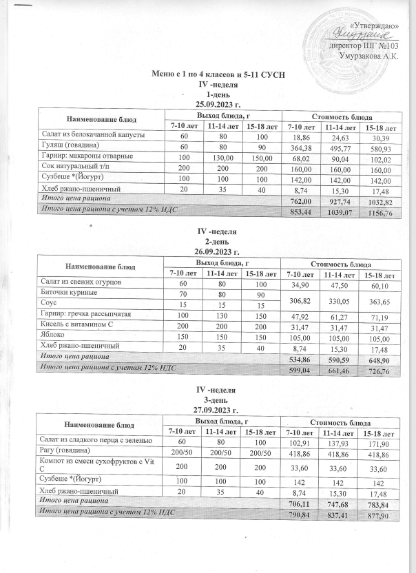 Ас мәзірі 26.09.23 » КГУ "Школа-гимназия №103" Управления образования г.Алматы