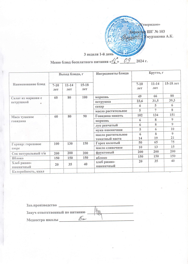 1 апталық ас мәзірі » КГУ "Школа-гимназия №103" Управления образования г.Алматы