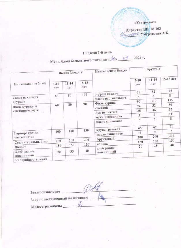 09 қыркүйек 2024 1 апталық ас мәзірі