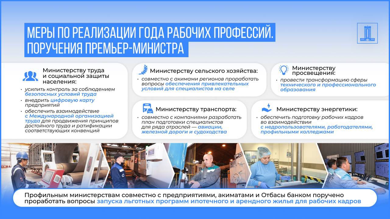 09 қаңтар 2025 0 1 2 3 4 5 ПРАВИТЕЛЬСТВОМ УТВЕРЖДЕН ПЛАН МЕРОПРИЯТИЙ ПО ПРОВЕДЕНИЮ ГОДА РАБОЧИХ ПРОФЕССИЙ