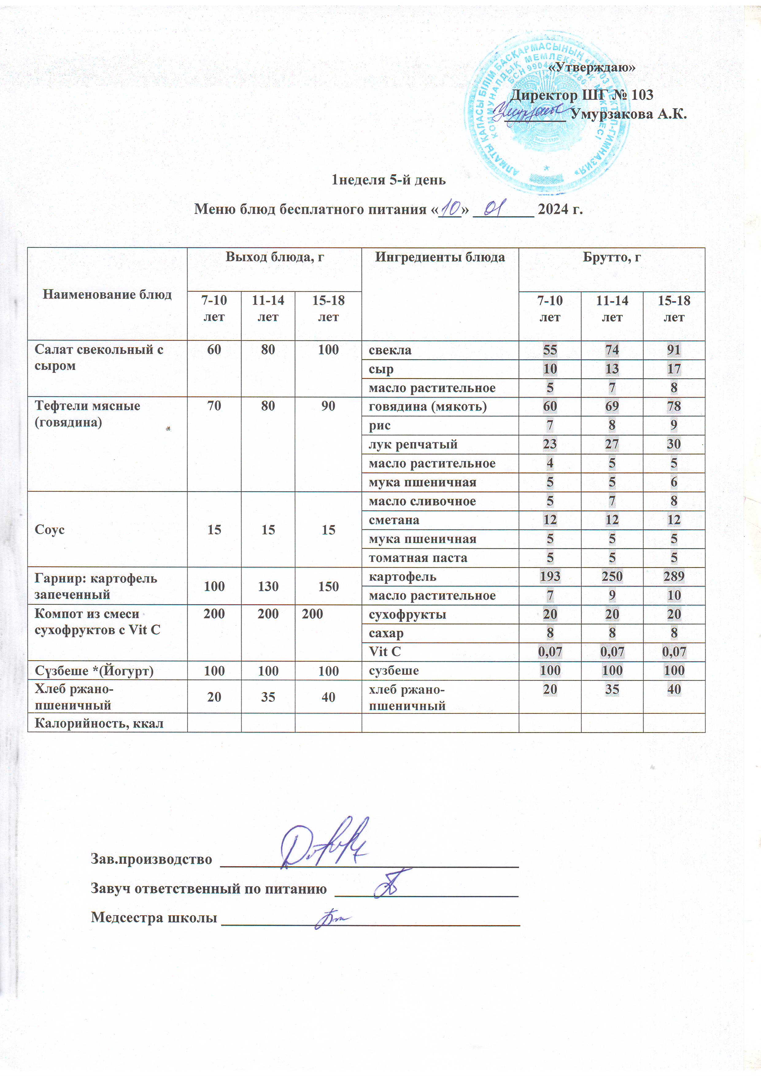 Ас мәзірі, бақылау тамағы » КГУ "Школа-гимназия №103" Управления образования г.Алматы