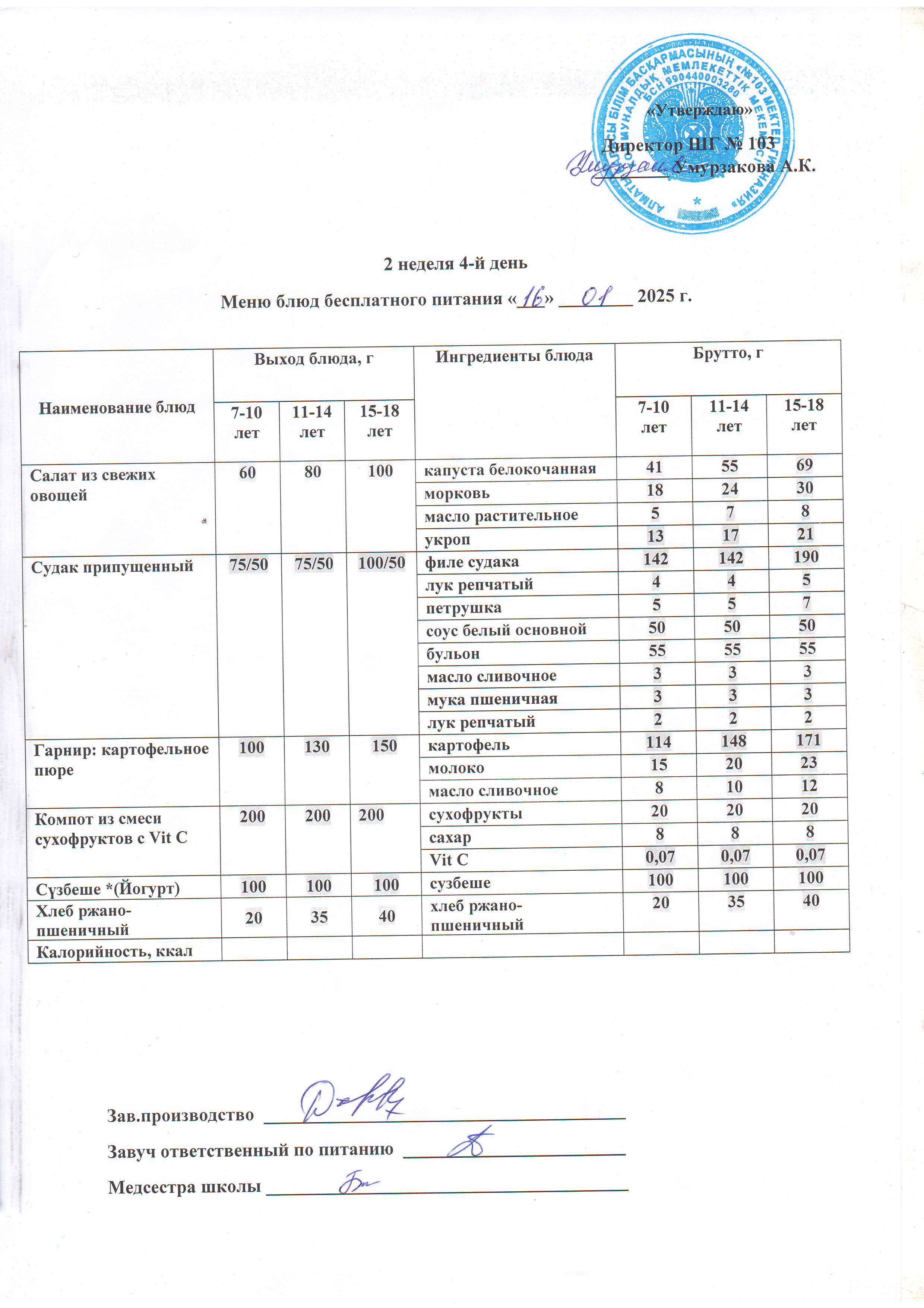 Ас мәзірі, бақылау тамағы » КГУ "Школа-гимназия №103" Управления образования г.Алматы