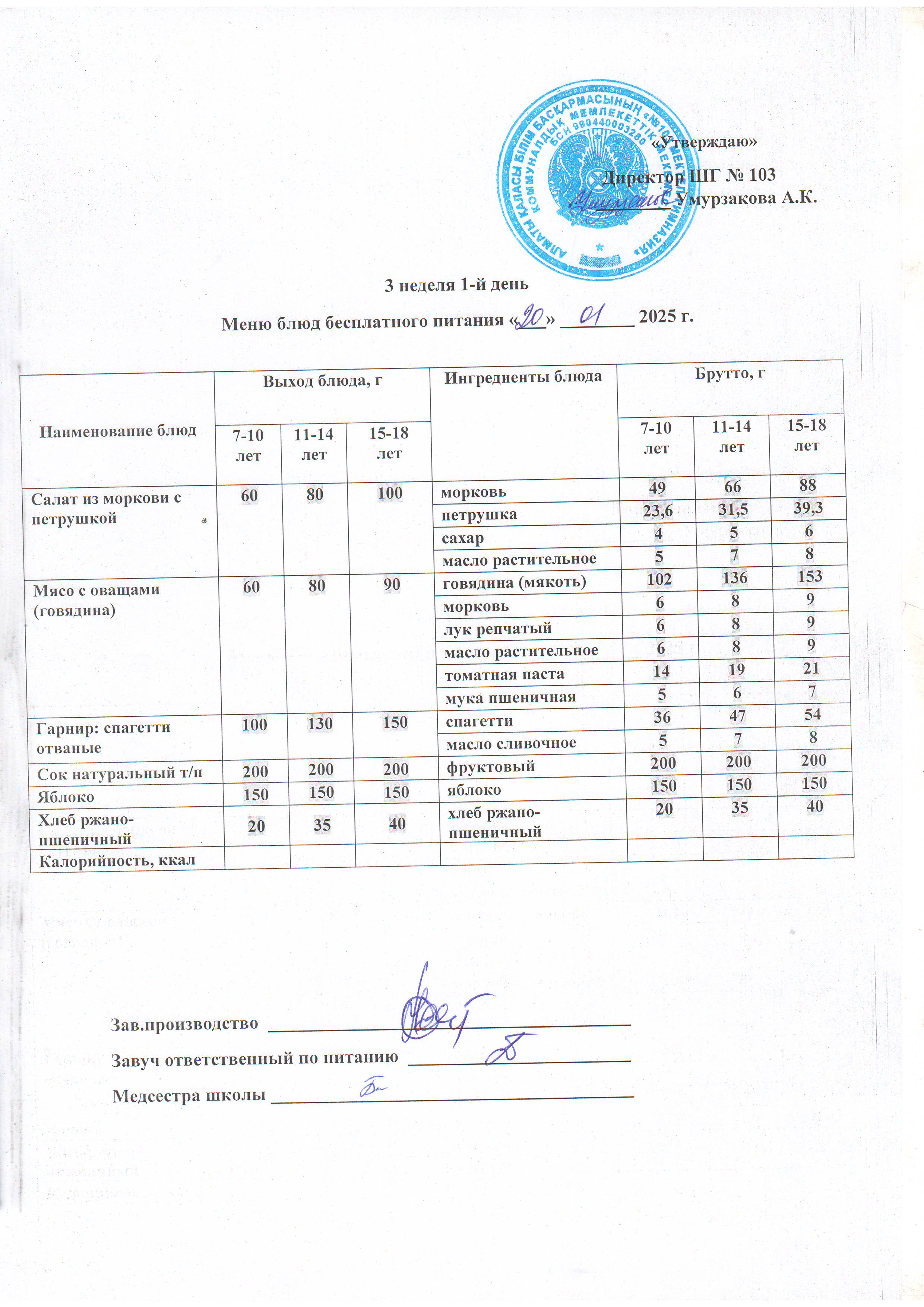 Ас мәзірі, бақылау тамағы » КГУ "Школа-гимназия №103" Управления образования г.Алматы