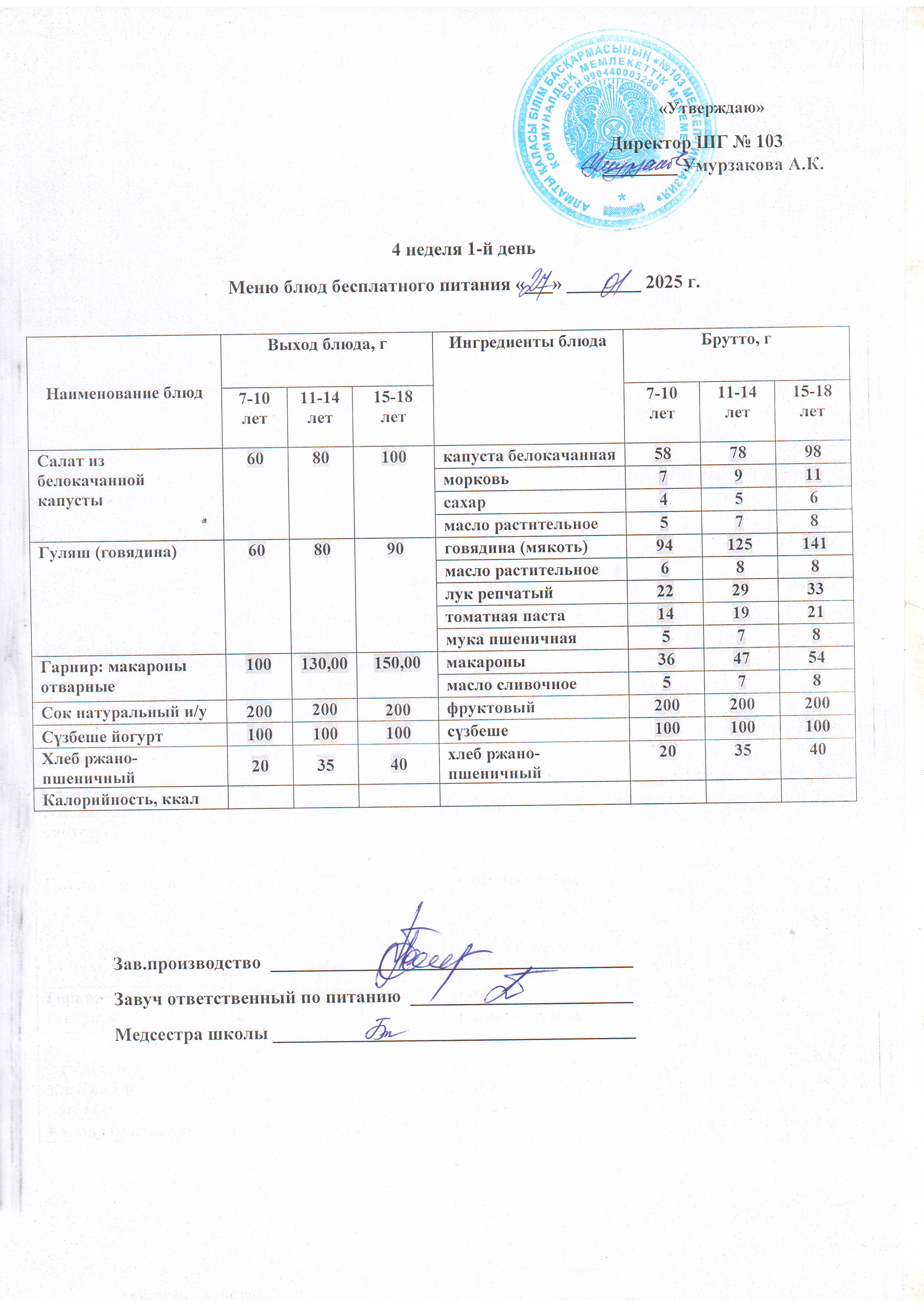 Ас мәзірі, бақылау тамағы » КГУ "Школа-гимназия №103" Управления образования г.Алматы