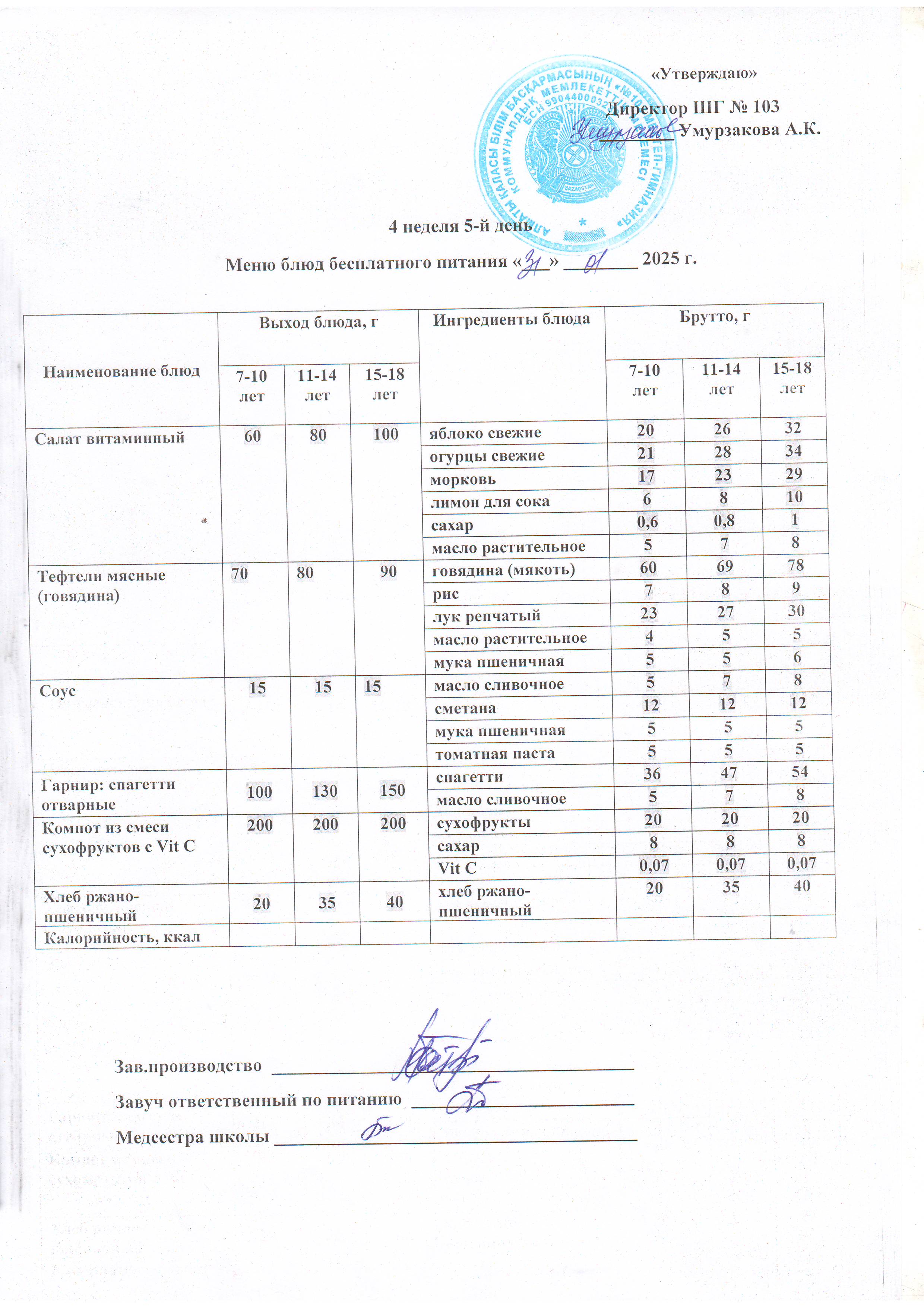 Асхана тағамдары , ас мәзірі » КГУ "Школа-гимназия №103" Управления образования г.Алматы