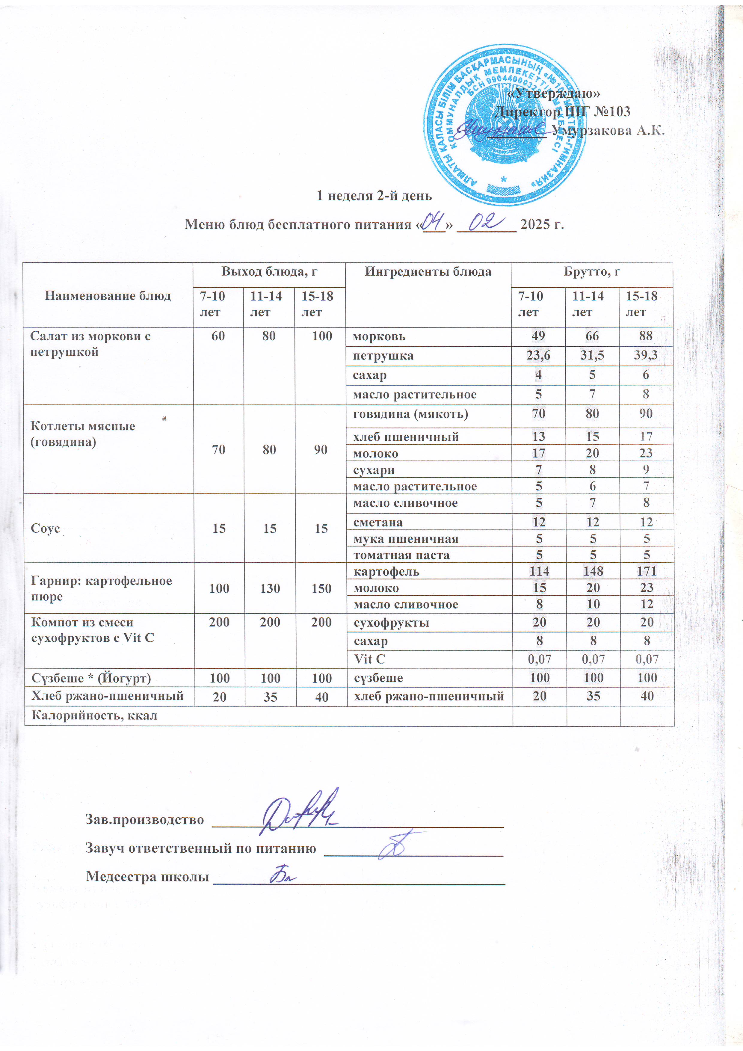 Сейсенбілік асхана тағамдары, ас мәзірі » КГУ "Школа-гимназия №103" Управления образования г.Алматы