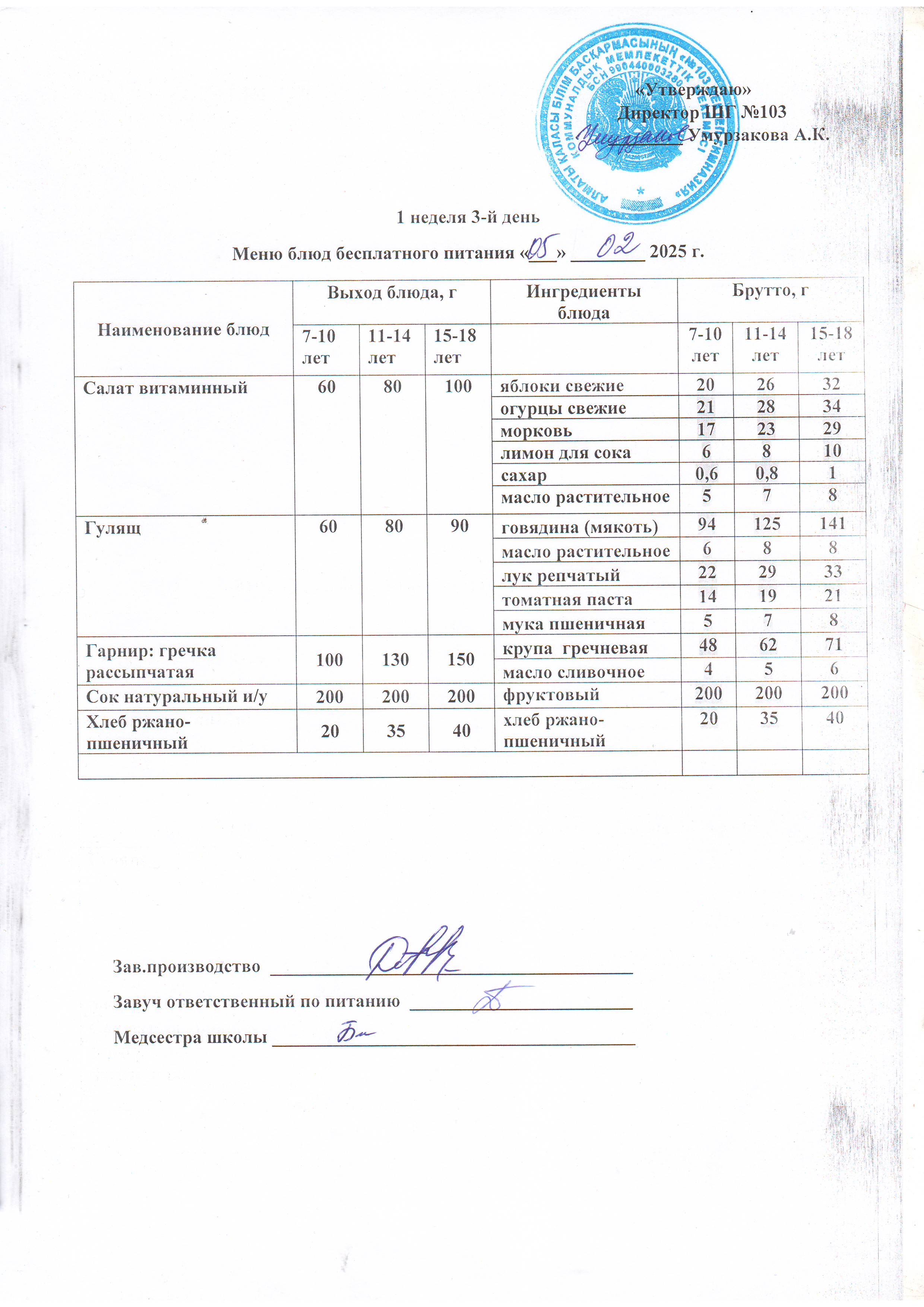 Сәрсенбілік асхана тағамдары, ас мәзірі » КГУ "Школа-гимназия №103" Управления образования г.Алматы