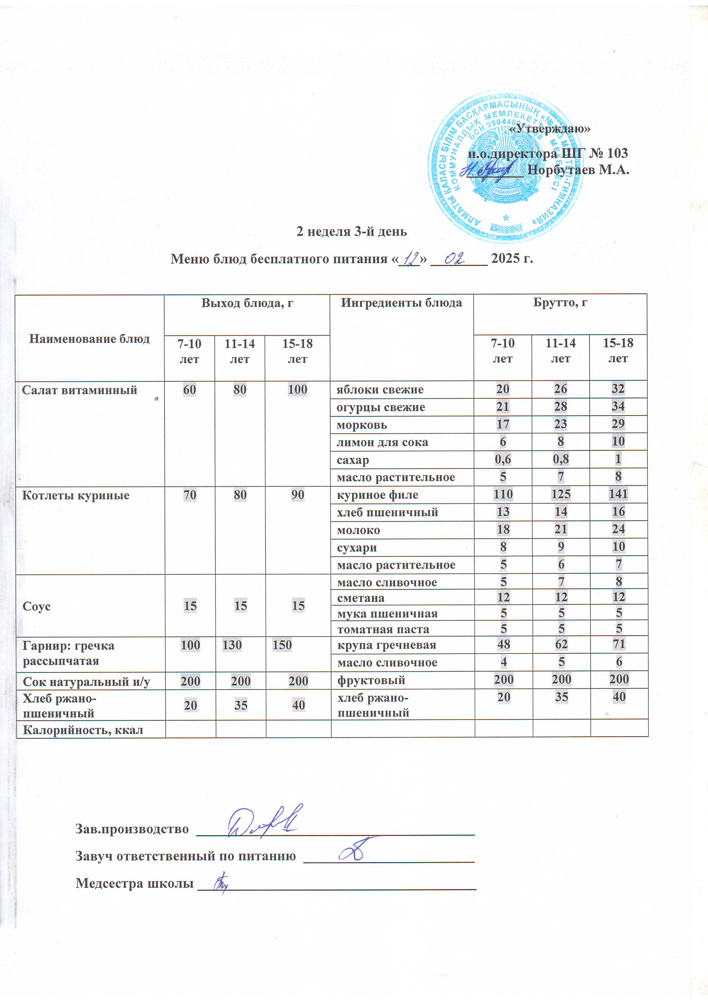 Сәрсенбілік ас мәзірі » КГУ "Школа-гимназия №103" Управления образования г.Алматы