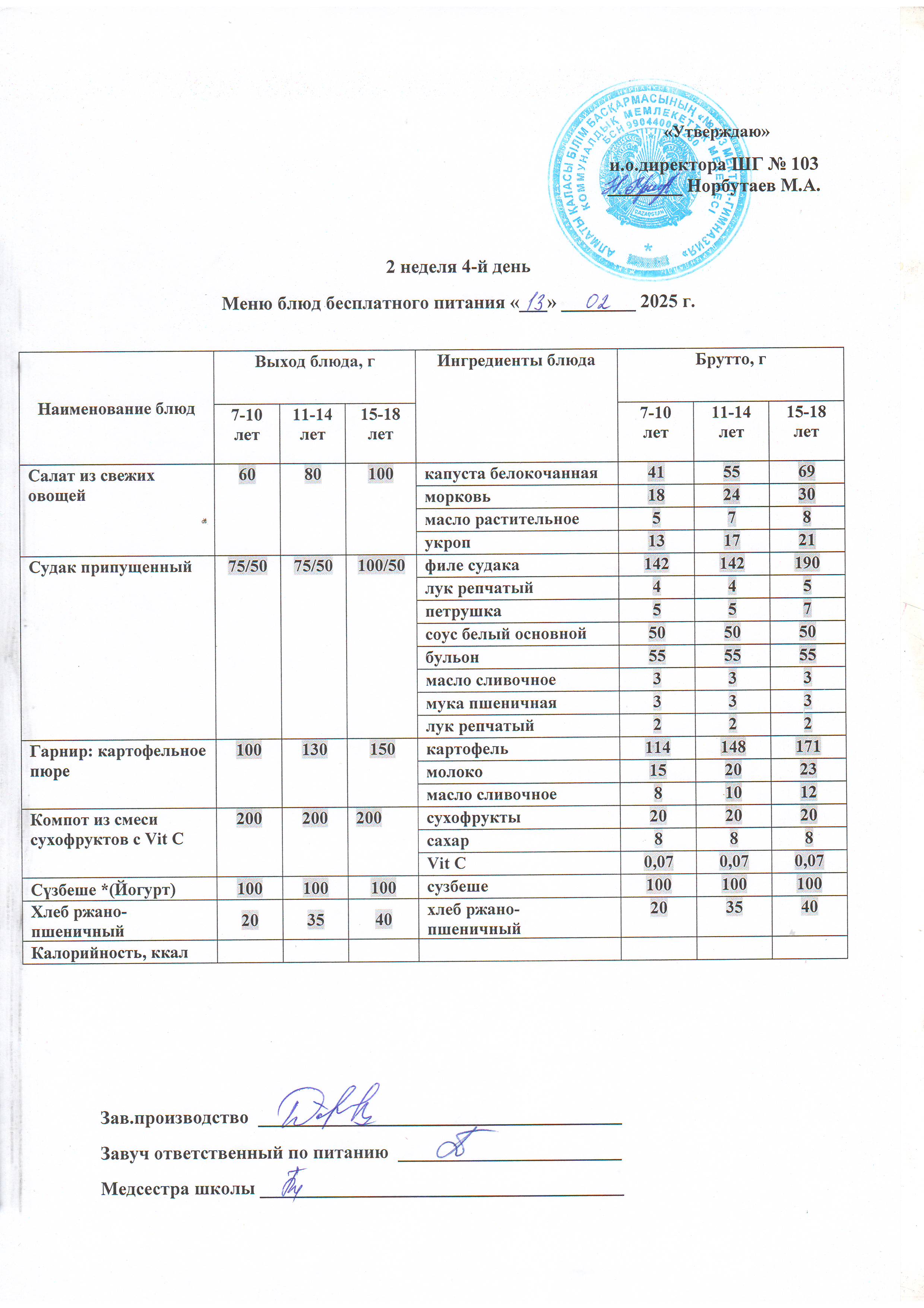 Бейсенбілік асхана тағамдары, ас мәзірі » КГУ "Школа-гимназия №103" Управления образования г.Алматы
