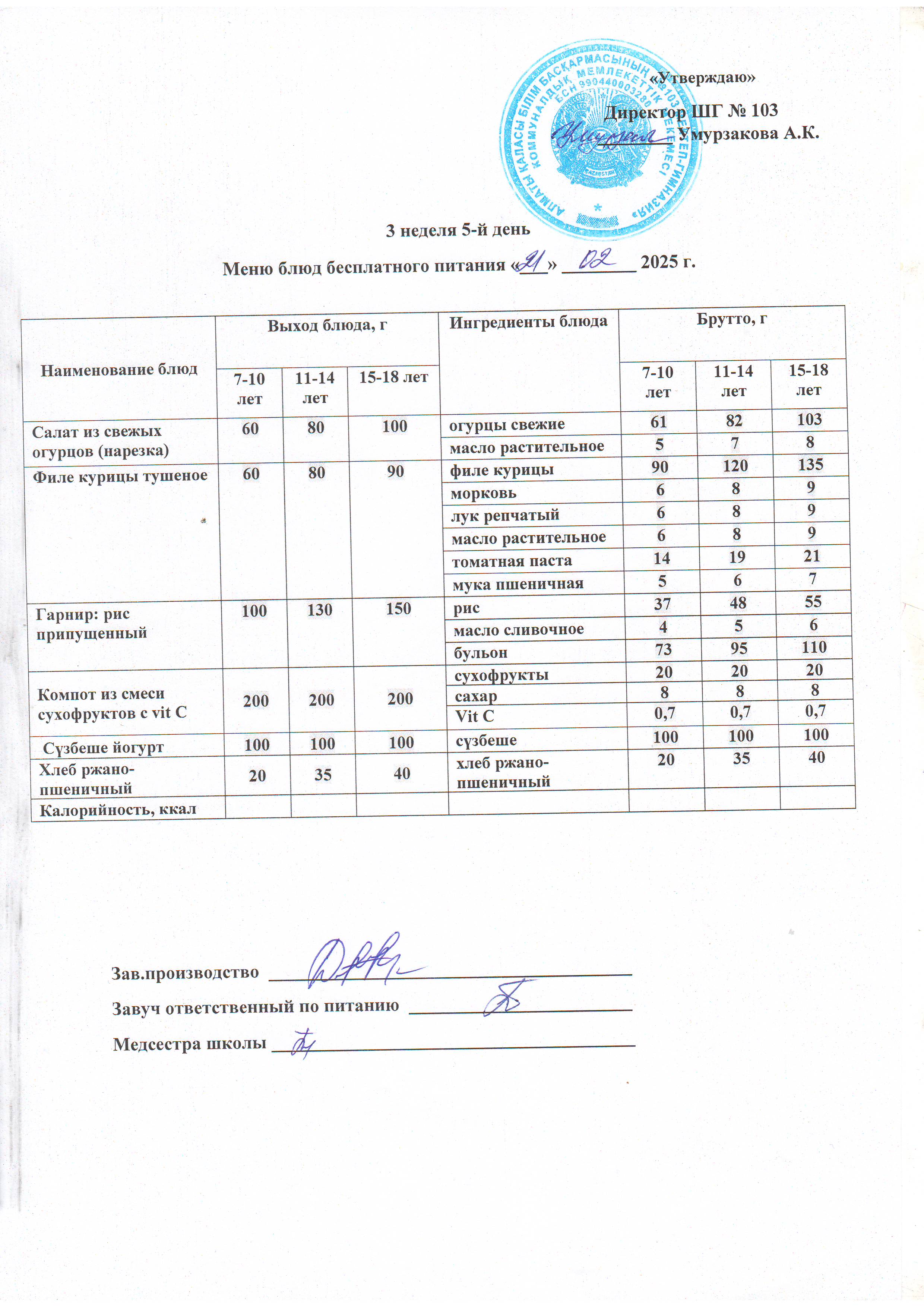 Ас мәзірі, асхана тағамдары » КГУ "Школа-гимназия №103" Управления образования г.Алматы