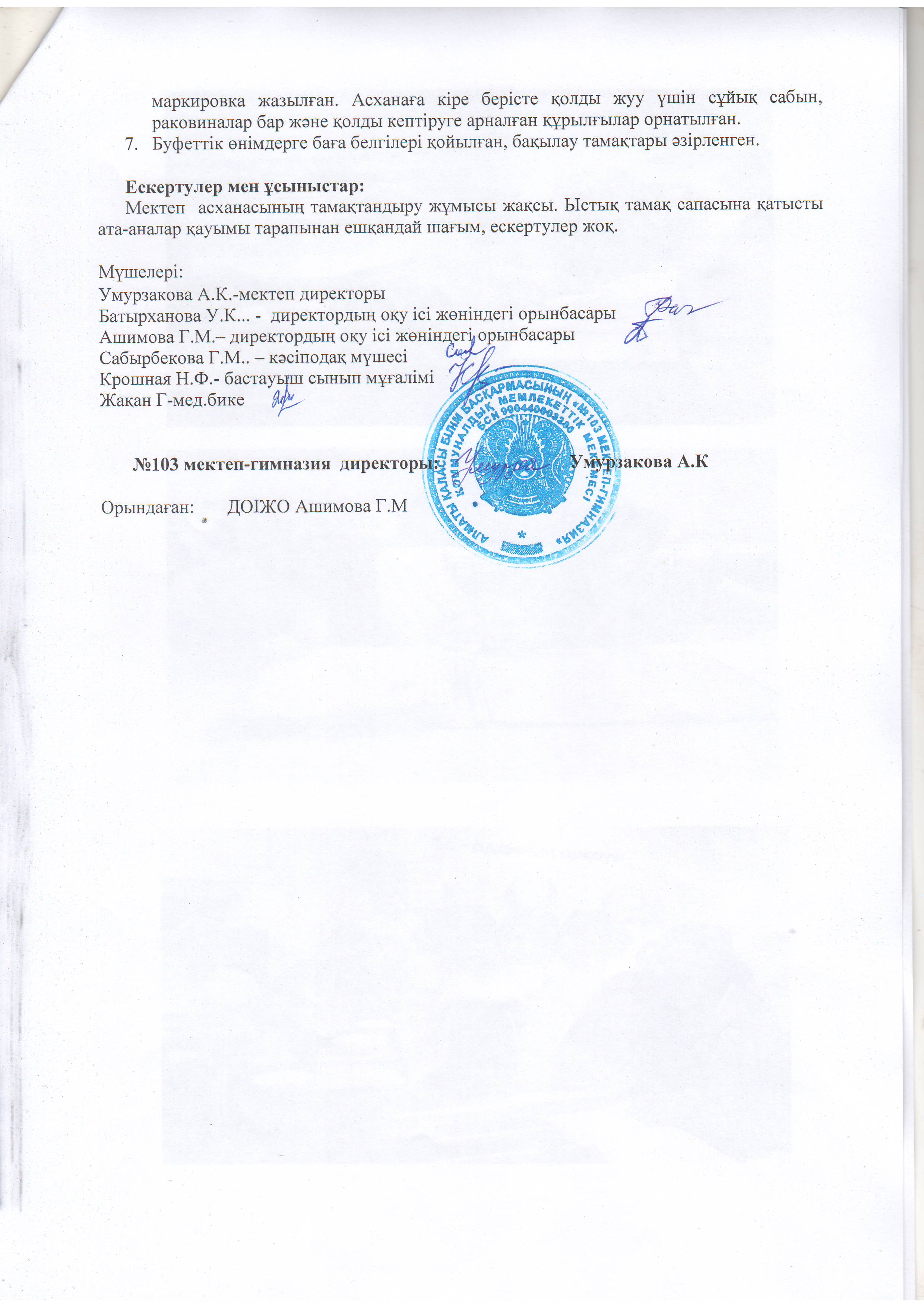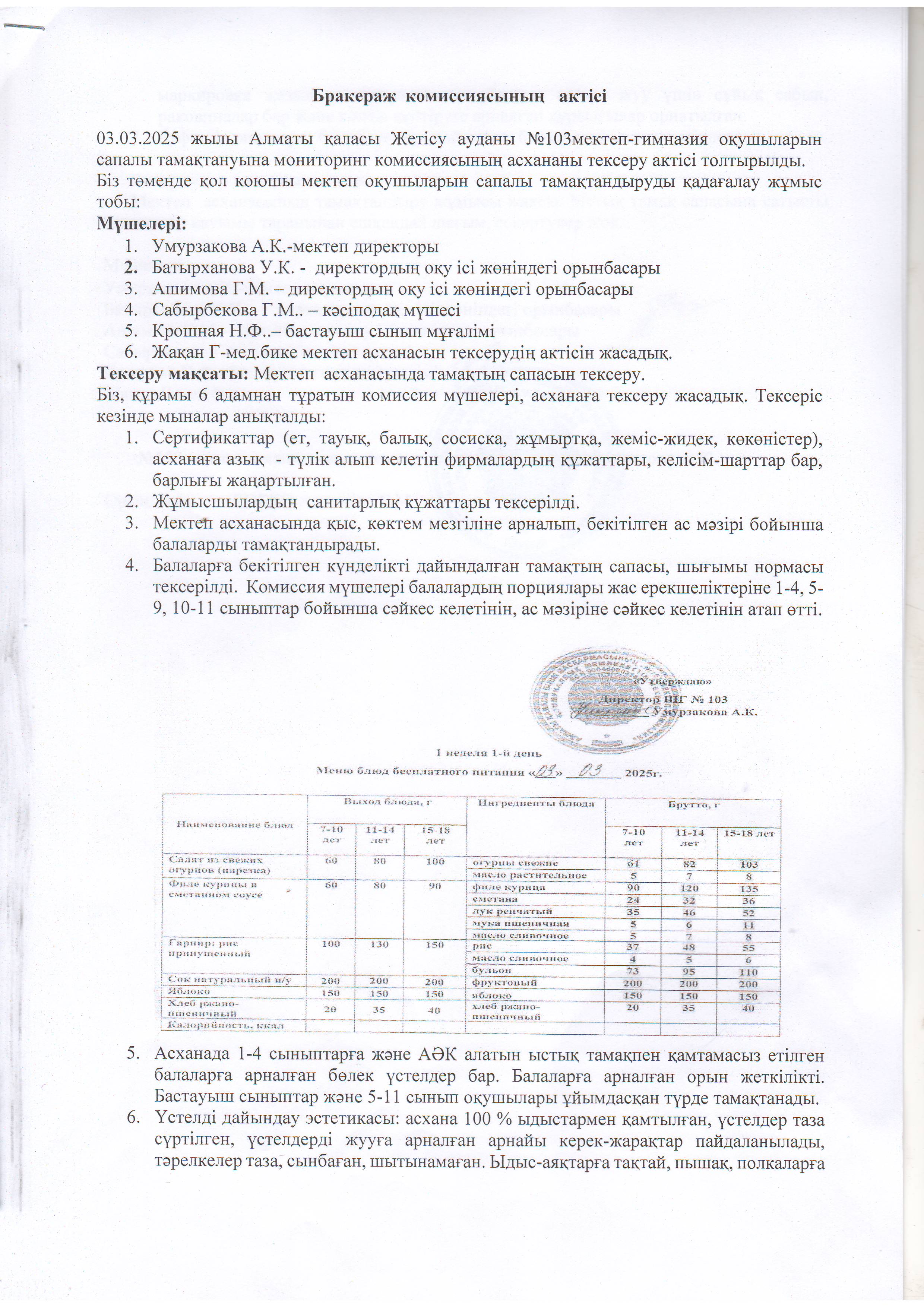 Бракераж комиссиясының актісі » КГУ "Школа-гимназия №103" Управления образования г.Алматы