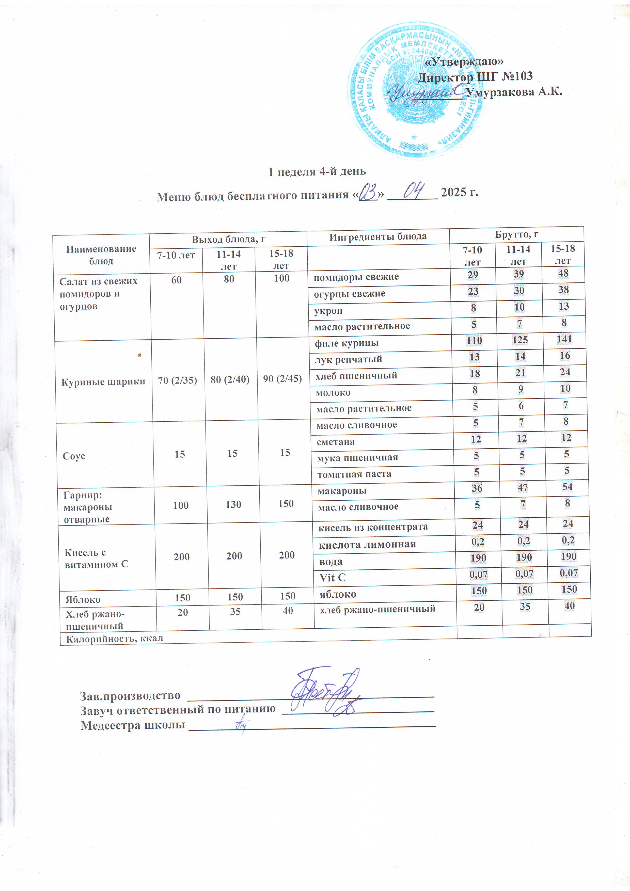 Бейсенбілік ас мәзірі » КГУ "Школа-гимназия №103" Управления образования г.Алматы