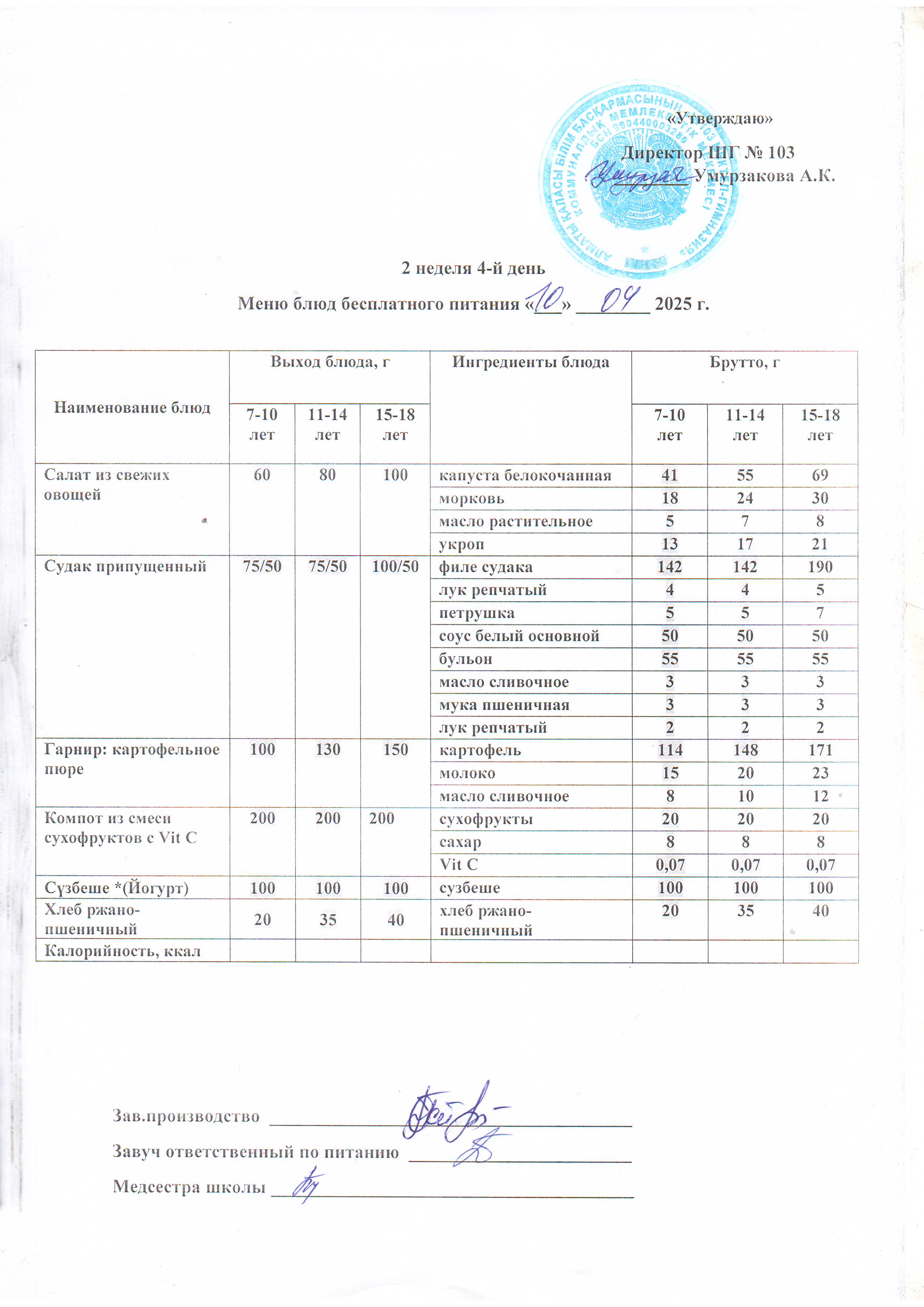Бейсенбілік ас мәзірі, бақылау тамағы » КГУ "Школа-гимназия №103" Управления образования г.Алматы