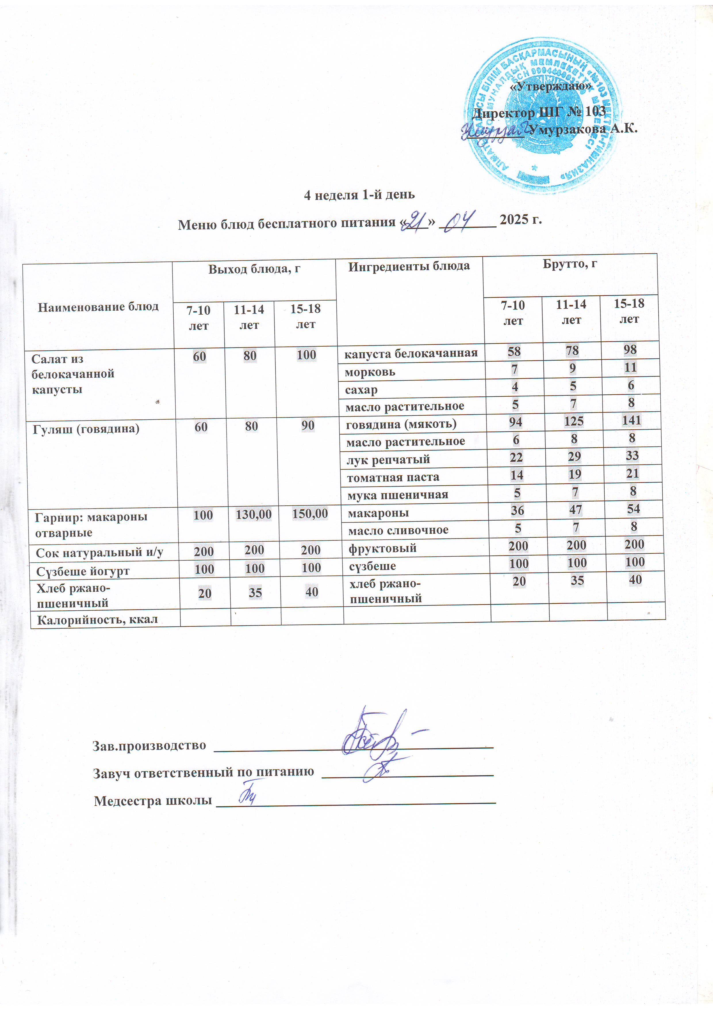 Дүйсенбілік ас мәзірі » КГУ "Школа-гимназия №103" Управления образования г.Алматы