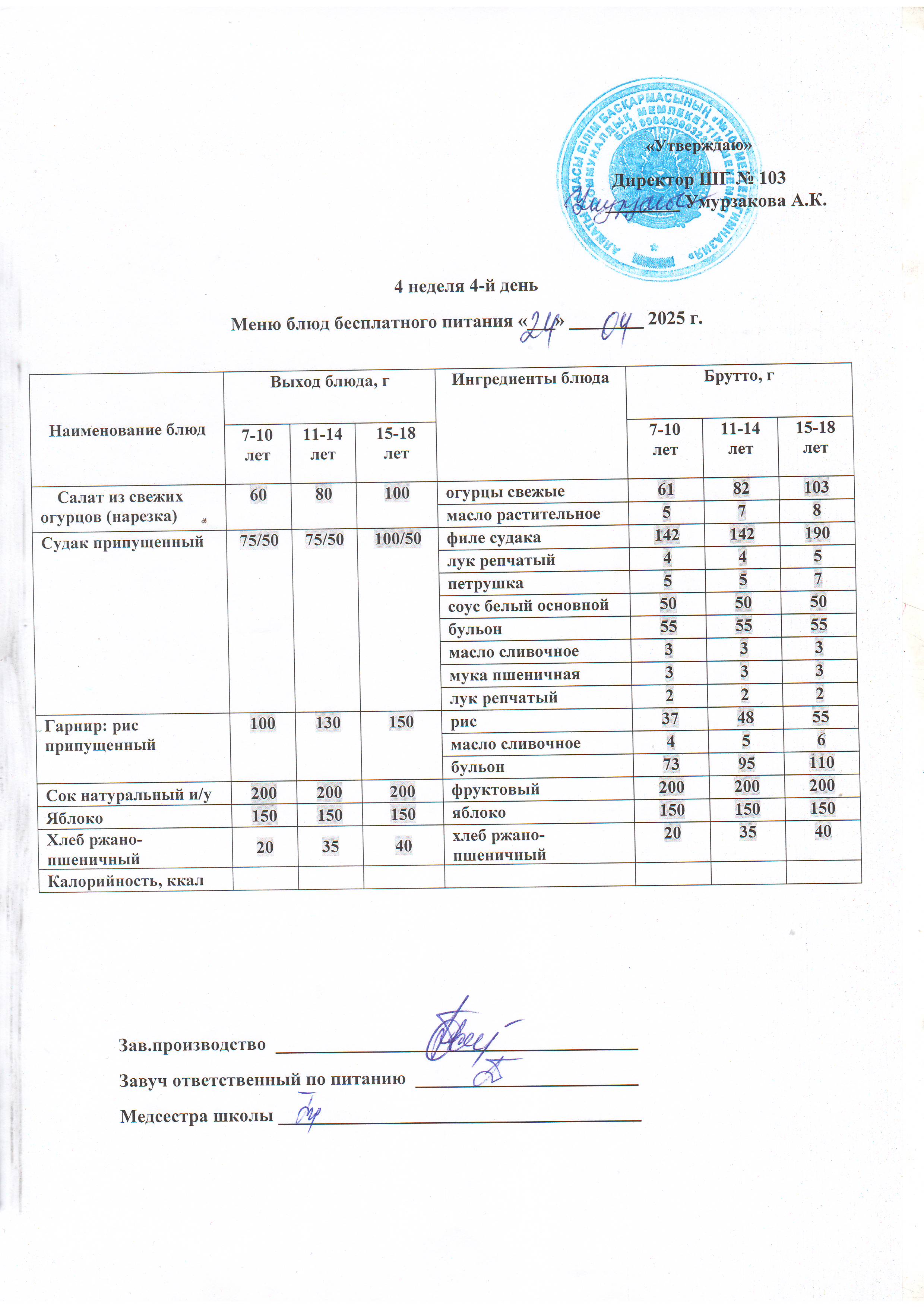 Бейсенбілік ас мәзірі » КГУ "Школа-гимназия №103" Управления образования г.Алматы