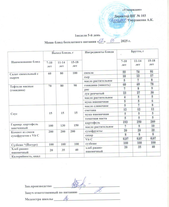 Ас мәзірі, бақылау тамағы 02.05.2024 » КГУ "Школа-гимназия №103" Управления образования г.Алматы