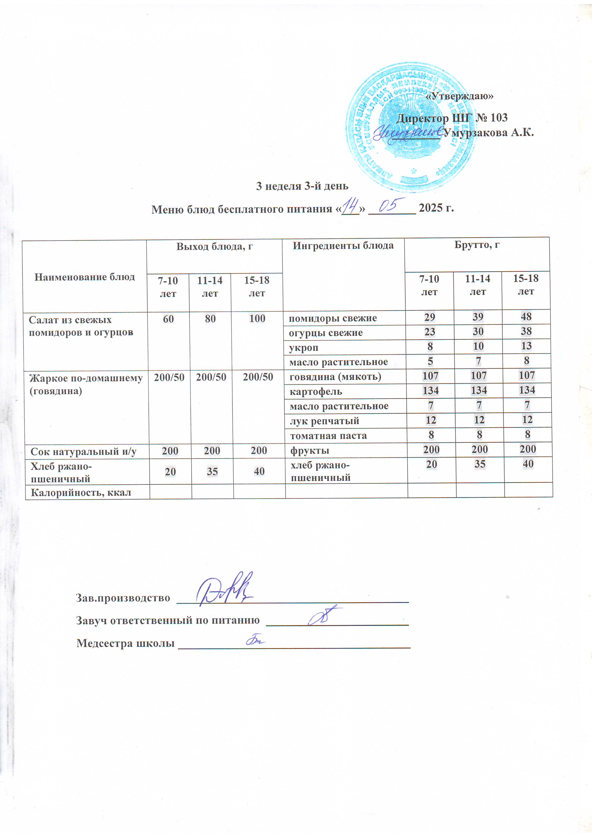 Ас мәзірі, бақылау тамағы 14.05.2025 » КГУ "Школа-гимназия №103" Управления образования г.Алматы