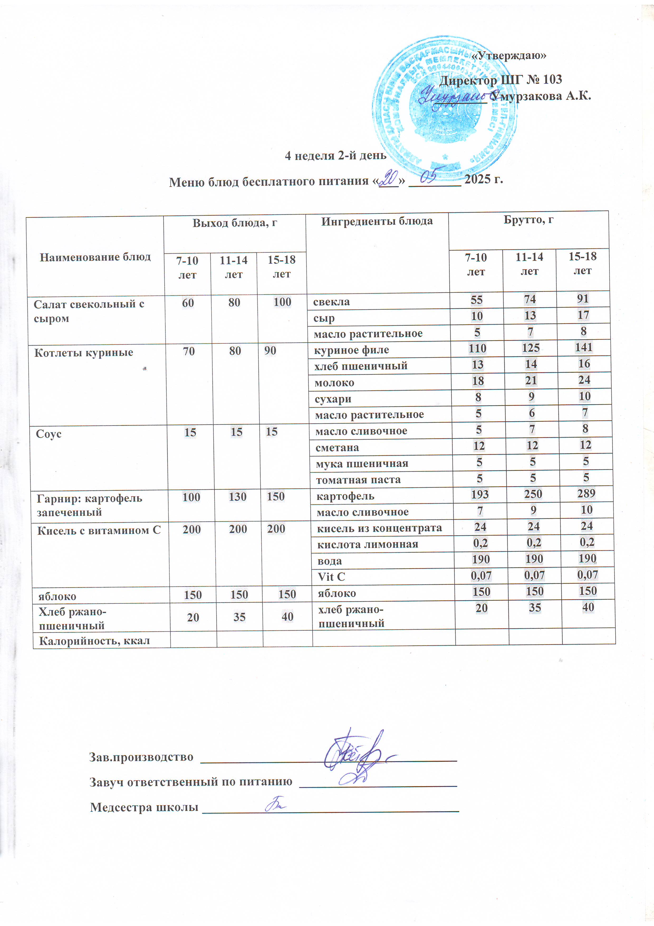 Ас мәзірі, бақылау тамағы 20.05.2025 » КГУ "Школа-гимназия №103" Управления образования г.Алматы