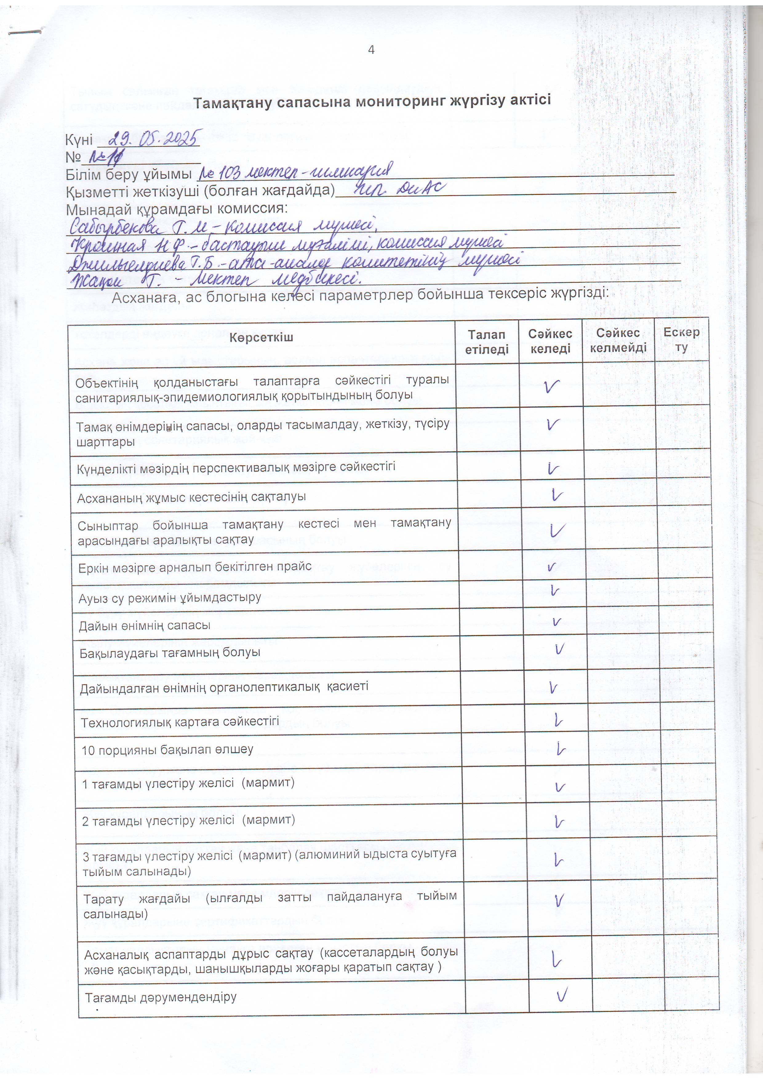 29.09.2025 жылы жазғы лагерь бойынша асхананы тексеру актісі » КГУ "Школа-гимназия №103" Управления образования г.Алматы
