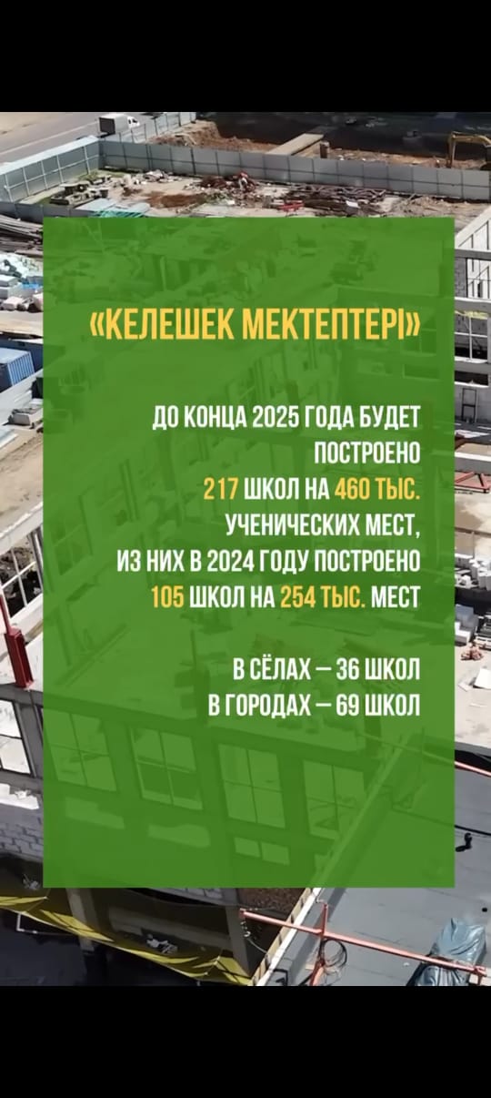🇰🇿 По инициативе Главы государства реализуется беспрецедентный проект строительства школ нового формата, не имевший аналогов в истории казахстанского образования.