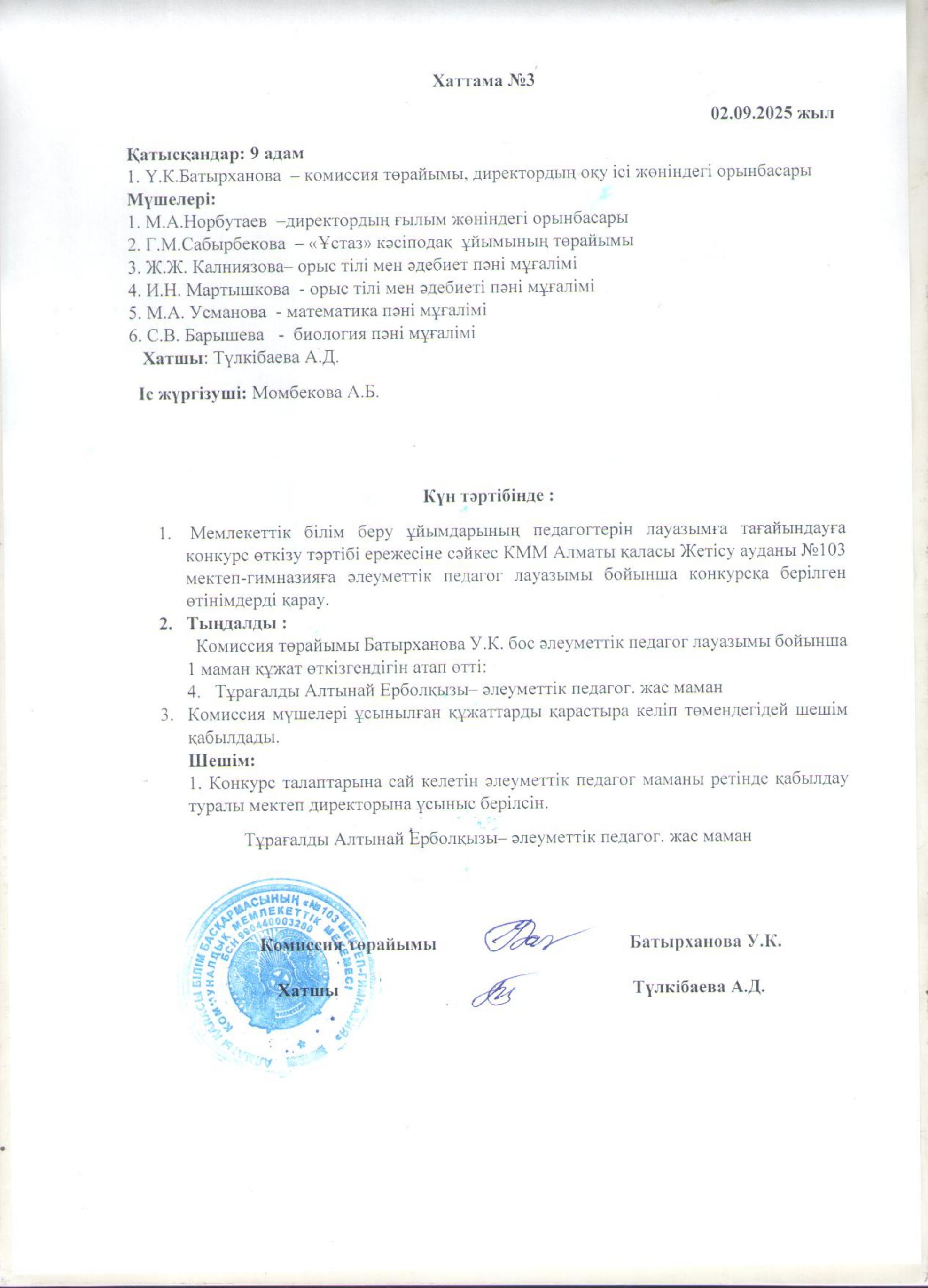 Хаттама №3 » КГУ "Школа-гимназия №103" Управления образования г.Алматы