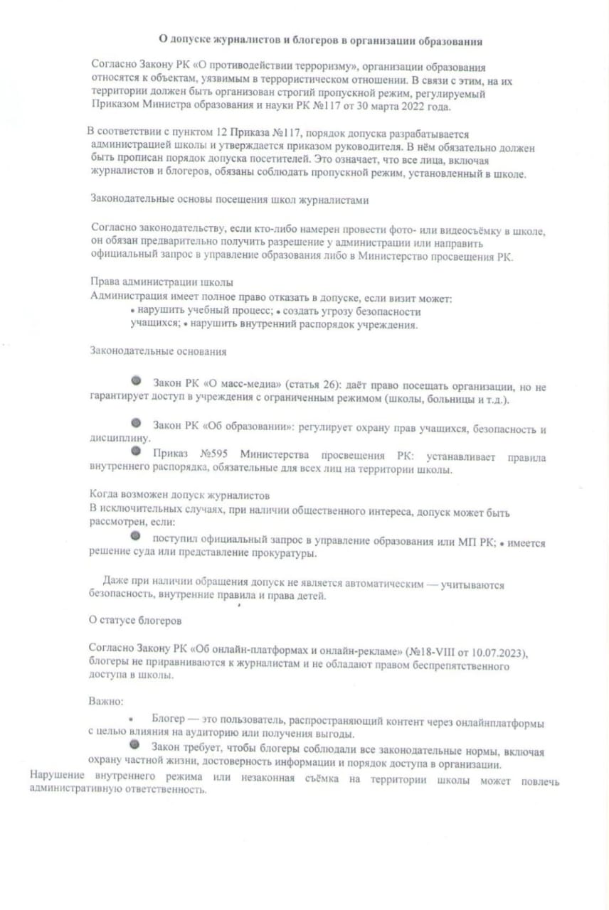 Приказ "Об организации пропускного режима" » КГУ "Школа-гимназия №103" Управления образования г.Алматы
