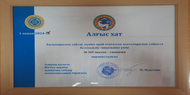 31 қаңтар 2024 0 1 2 3 4 5 Мектебіміздің өзін өзі басқару ұйымының мүшелері Дүниежүзілік сайлау күніне арналған бейнеролик дайындап алғыс хатпен марапатталды.