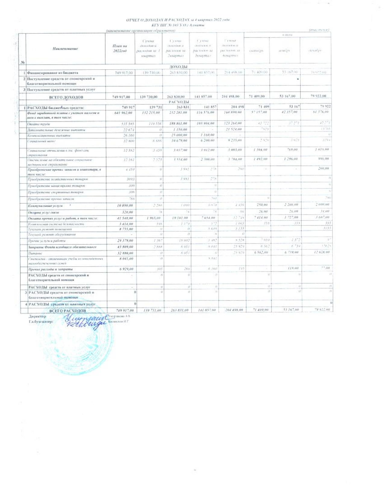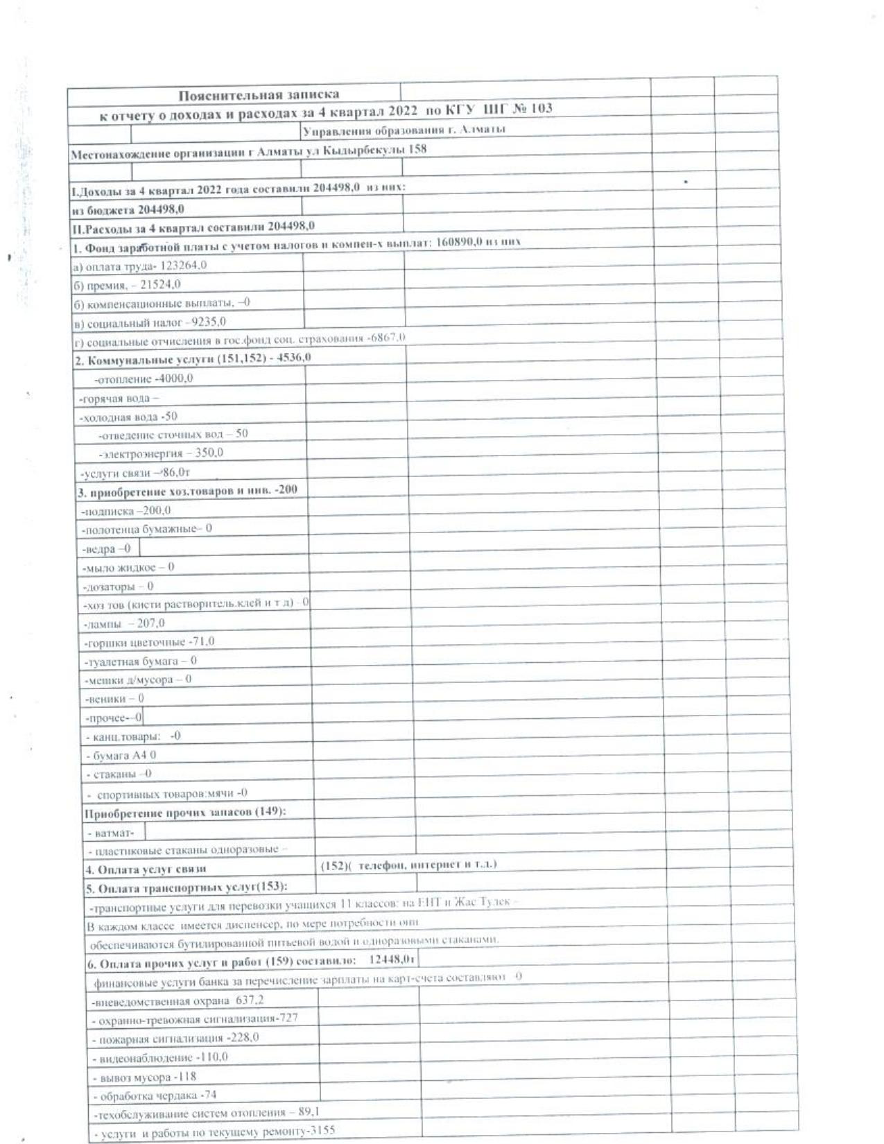 Отчет о доходах и расходах за 4 квартал 2021 года » КГУ "Школа-гимназия №103" Управления образования г.Алматы