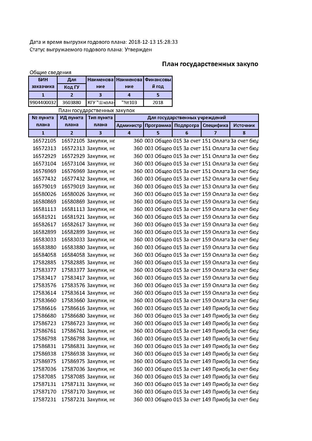 план гос закупок » КГУ "Школа-гимназия №103" Управления образования г.Алматы